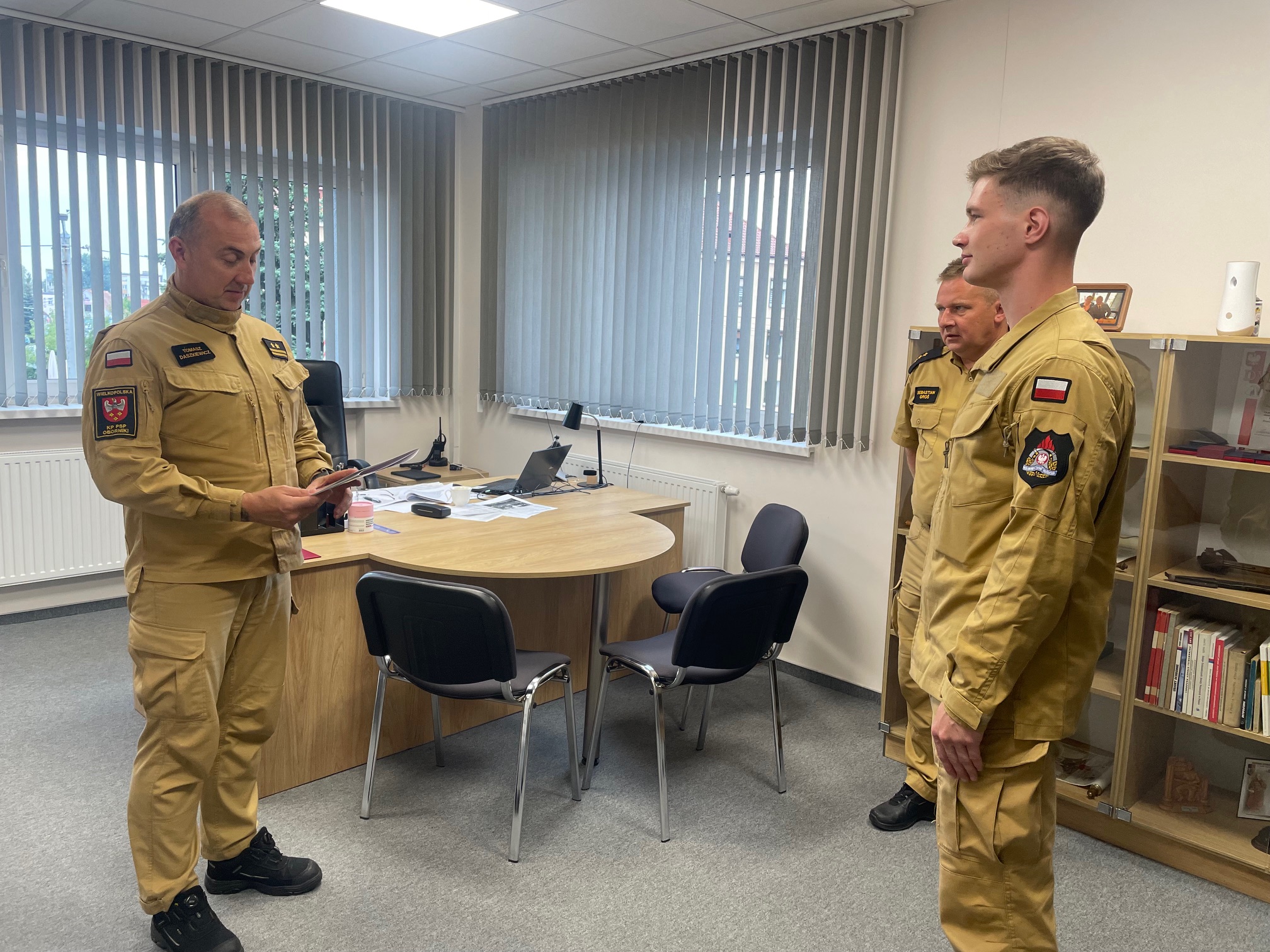 W dniu 01 sierpnia 2025 r. w Komendzie Powiatowej PSP w Obornikach odbyło się spotkanie, podczas którego Komendant Powiatowy PSP w Obornikach bryg. Tomasz Daszkiewicz w obecności Zastępcy Dowódcy JRG kpt. Sebastiana Grosia wręczył decyzję personalną w sprawie mianowania na stanowisko: absolwent-aspirant w służbie stałej, mł. asp. Erykowi Bromber.