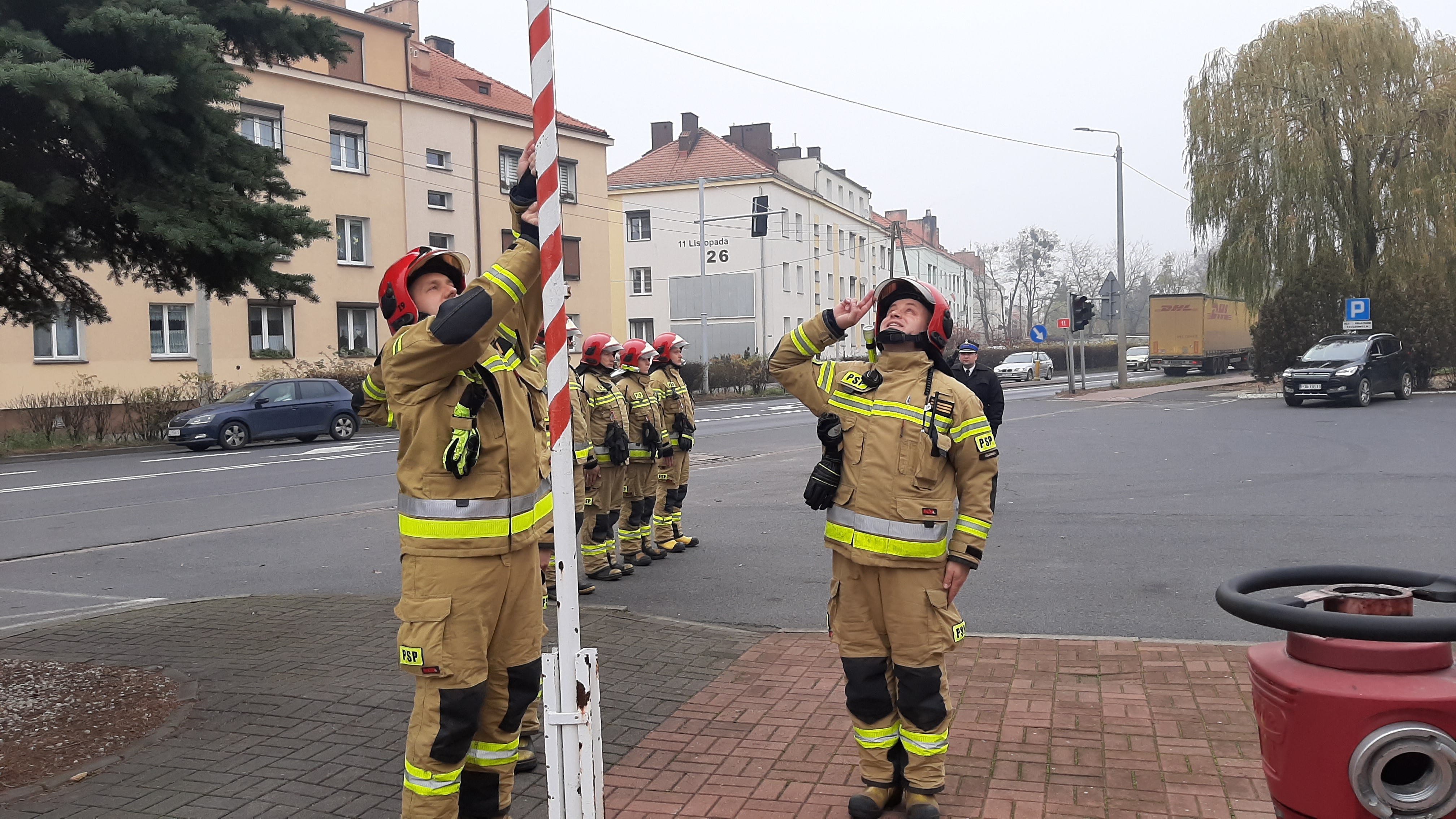 W dniu 11 listopada br. zmiana służbowa wraz z przedstawicielem Komendanta Powiatowego PSP w Obornikach – st. kpt. Krzysztofa Pertmana, przyłączyla się do świętowania 103. rocznicy odzyskania przez Polskę niepodległości. Wzorem lat ubiegłych wsparła akcję “Niepodległa do hymnu”, polegającą na wspólnym odśpiewaniu Mazurka Dąbrowskiego w dniu Narodowego Święta Niepodległości. Punktualnie o godz. 12:00 poczet flagowy podniósł flagę na maszt, a wszyscy zebrani funkcjonariusze odśpiewali Mazurka Dąbrowskiego.
