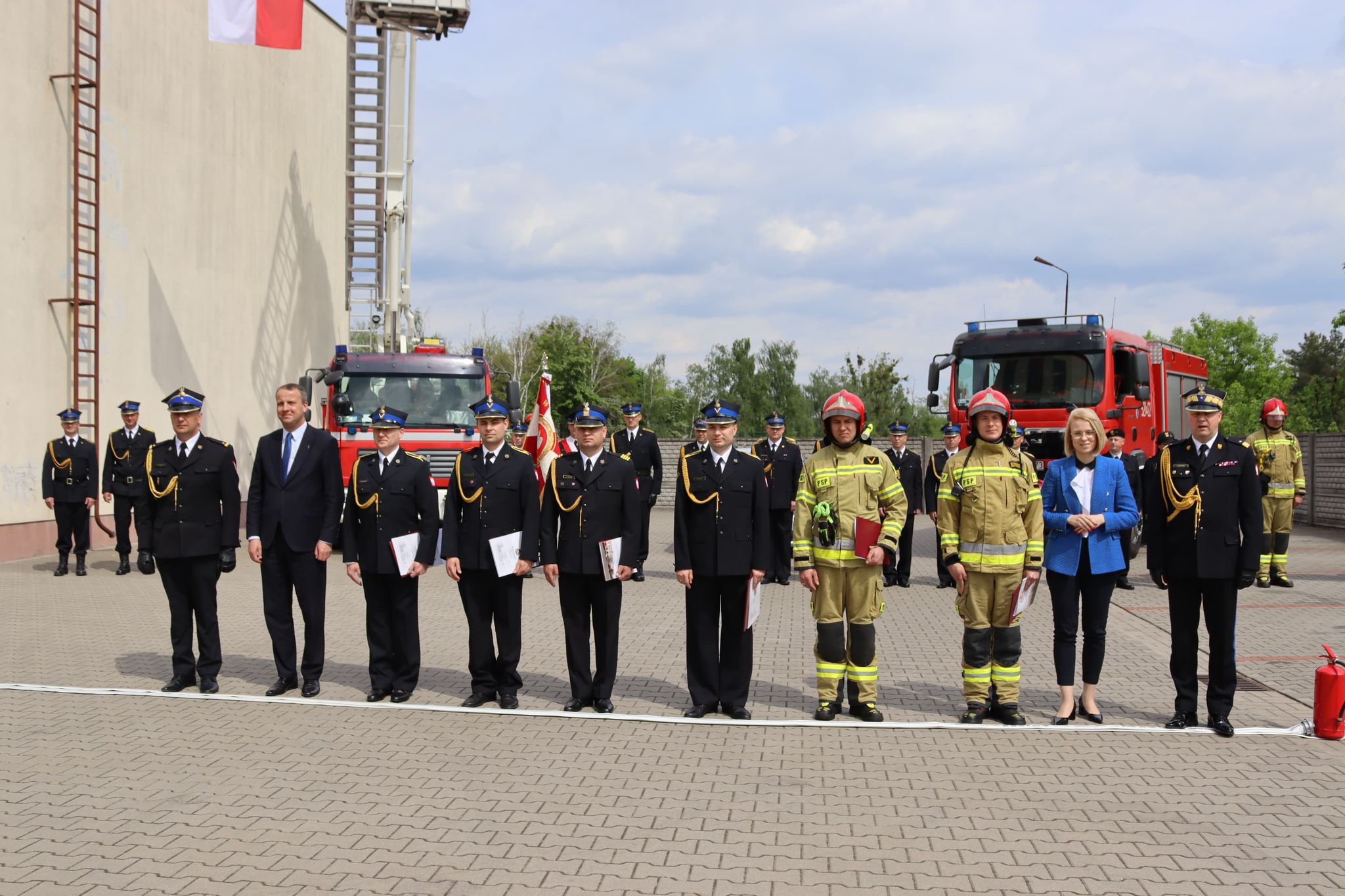 Uroczystość rozpoczęła się od złożenia meldunku Panu Wojewodzie Wielkopolskiemu Michałowi Zielińskiemu przez dowódcę uroczystości mł. bryg. Leszka Walczaka. Następnie przy dźwiękach Mazurka Dąbrowskiego przy użyciu podnośnika SHD – 23 dokonano uroczystego podniesienia flagi państwowej.