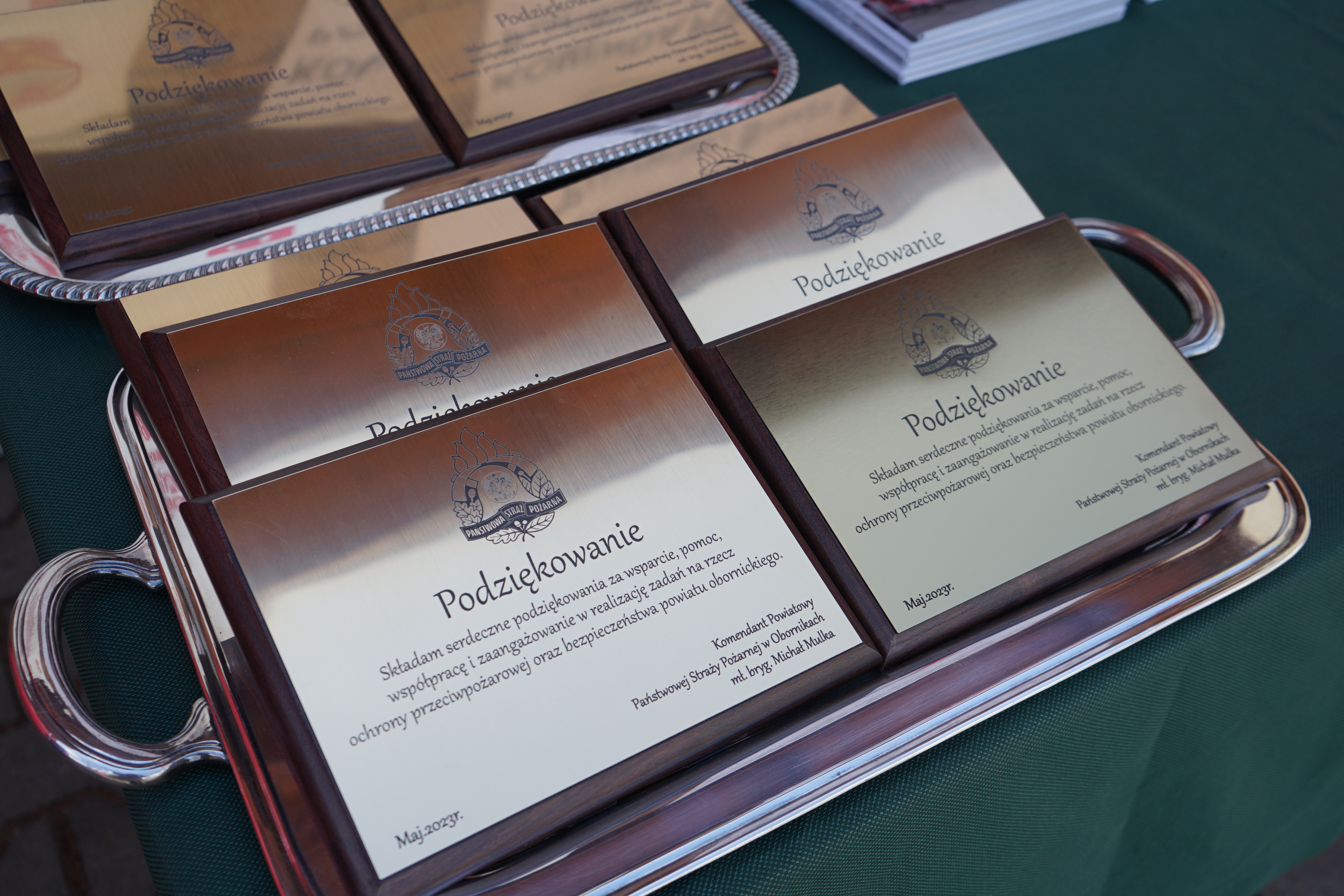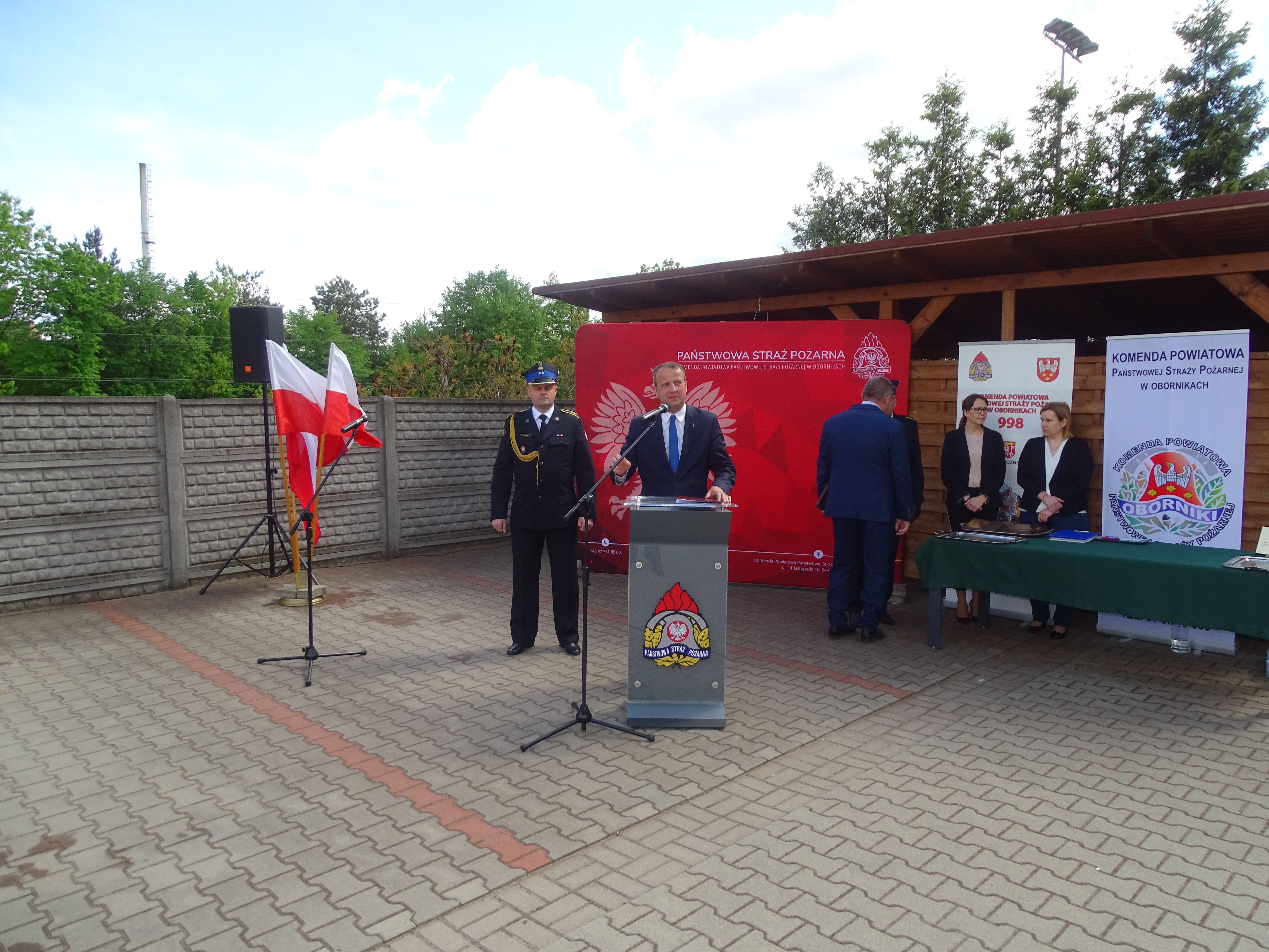 który złożyli podziękowania dla Pracowników cywilnych i Funkcjonariuszy Komendy Powiatowej Państwowej Straży Pożarnej w Obornikach oraz druhów Ochotniczych Straży Pożarnych z terenu powiatu obornickiego za współpracę oraz służbę i codzienny trud w poprawie bezpieczeństwa lokalnej społeczności.