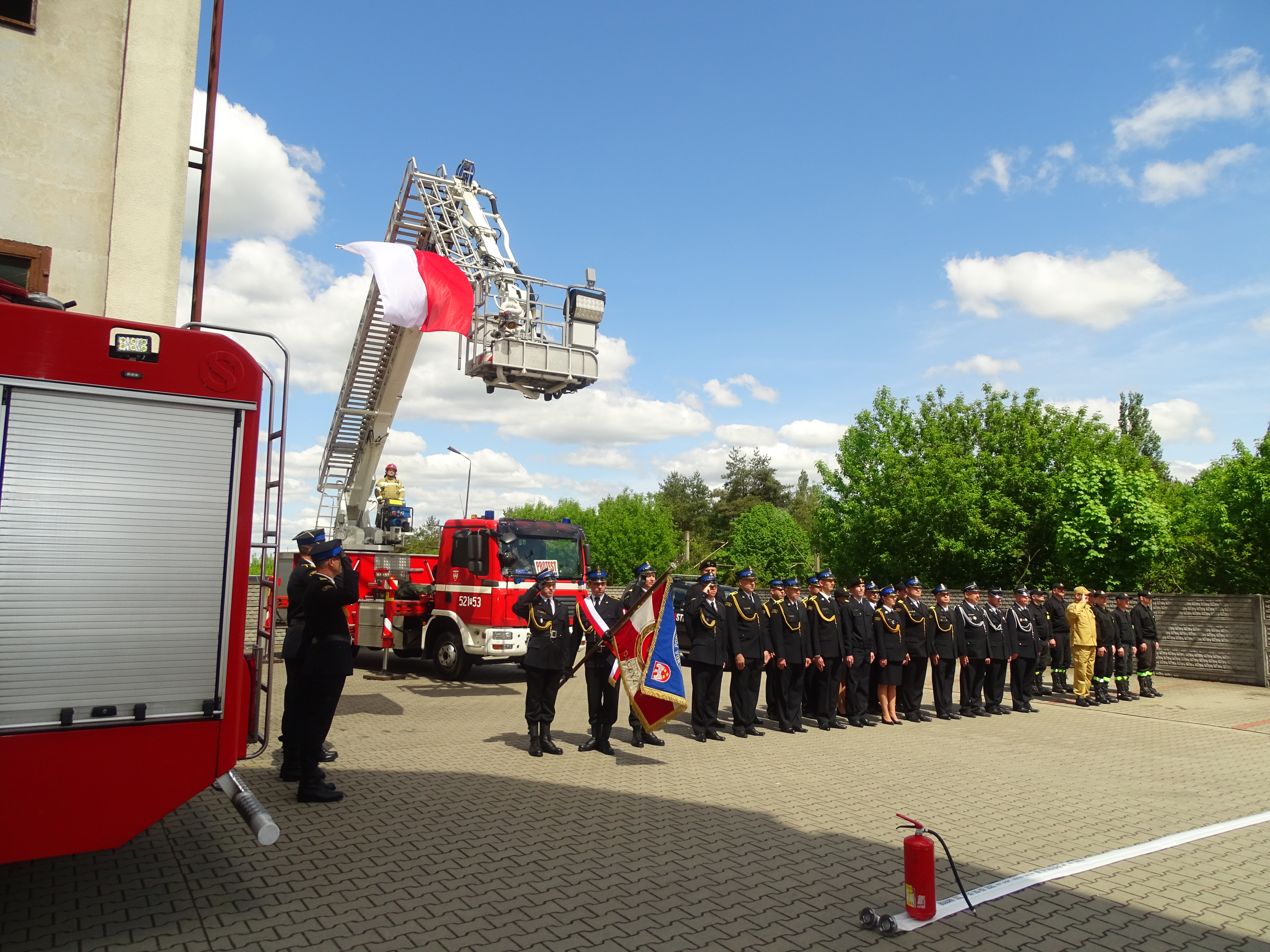 Uroczystość rozpoczęła się od złożenia meldunku st. bryg. Tomaszowi Grelakowi – Zastępcy Wielkopolskiego Komendanta Wojewódzkiego PSP przez dowódcę uroczystości mł. bryg. Leszka Walczaka. Następnie przy dźwiękach Mazurka Dąbrowskiego przy użyciu podnośnika SHD – 23 dokonano uroczystego podniesienia flagi państwowej.