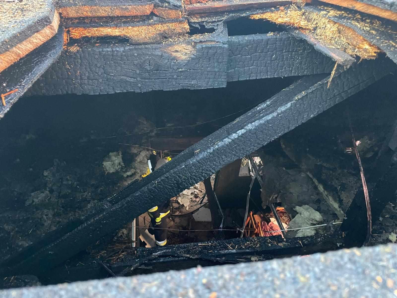 Działania strażaków polegały na zabezpieczeniu miejsca zdarzenia, odłączeniu mediów zasilających obiekt, utworzeniu dwóch odcinków bojowych (jeden w natarciu i jeden w obronie). Po ugaszeniu pożaru działania straży polegały na pracach rozbiórkowych wewnątrz obiektu, usunięciu nadpalonej płyty wiórowej, wełny mineralnej i trzciny. Równolegle podczas prowadzenia działań gaśniczych budynek został odłączony od zasilania elektrycznego. Następnie działania JOP polegały na sprawdzeniu pomieszczeń kamerą termowizyjną i miernikiem wielogazowym – brak zagrożenia.