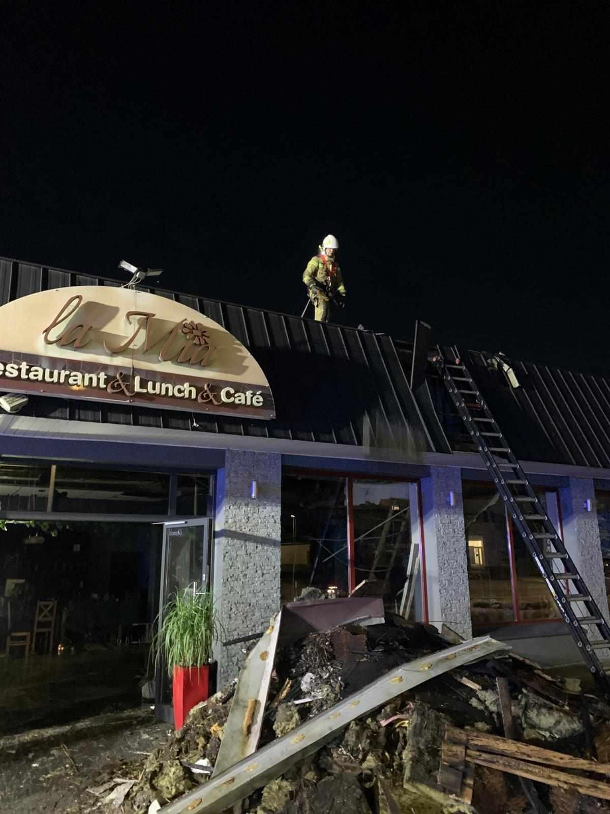 Po dojeździe na miejsce zdarzenia KDR stwierdził, że pali się rozdzielnica prądowa usytuowana w pomieszczeniu gospodarczym na zapleczu budynku restauracji Skrzynka rozdzielni była w całości objęta ogniem. Ogień przemieściły się w obszar poddasza i konstrukcji ściany osłonowej, która pokryta była trzciną i płyta wiórową. Goście restauracji (ok. 35 osób) oraz personel (15 osób) ewakuowali się na zewnątrz przed przybyciem JOP i nie wymagali udzielenia kwalifikowanej pomocy medycznej.