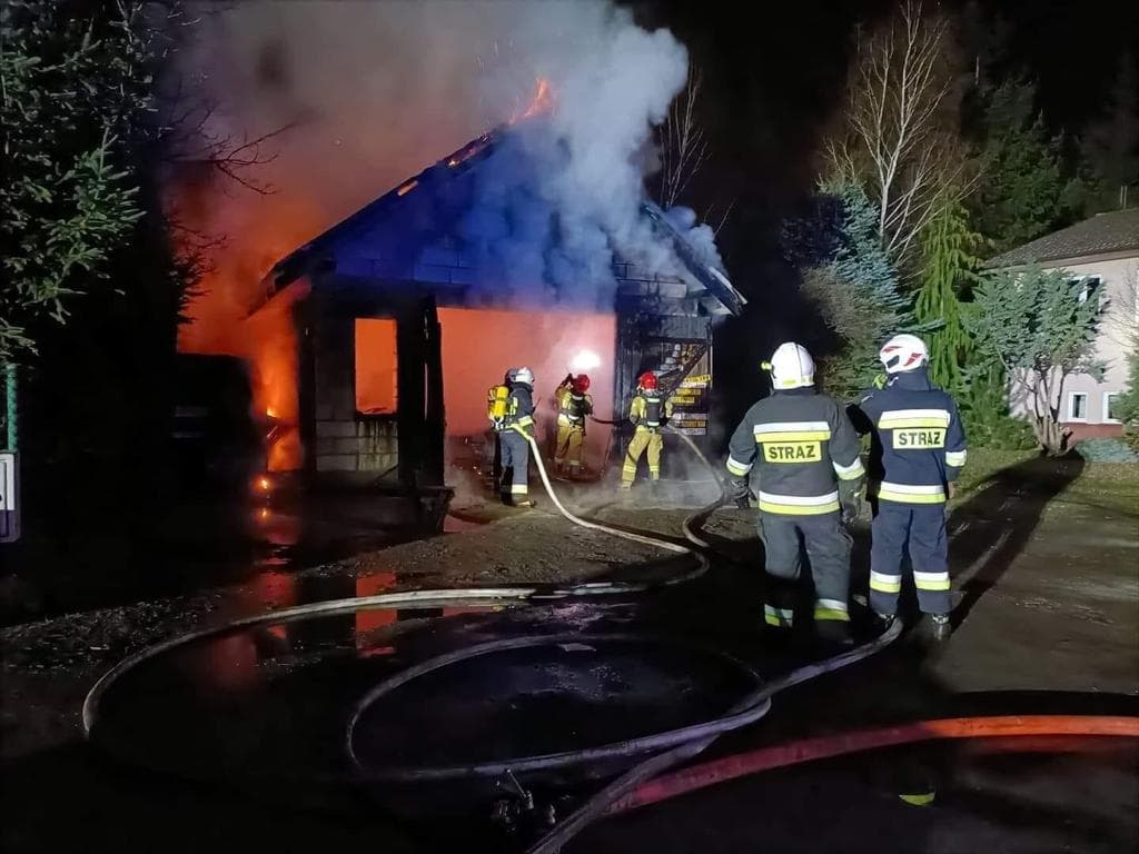 POŻAR GARAŻU Z GAZAMI TECHNICZNYMI PRZY UL. POLNEJ W OBORNIKACH