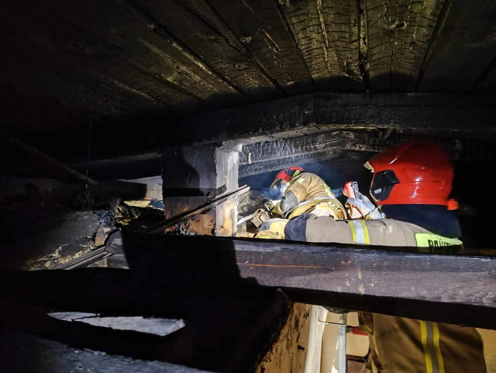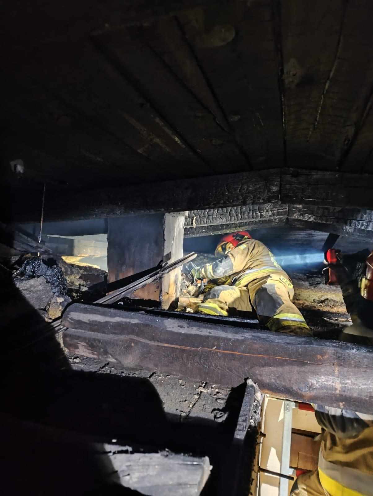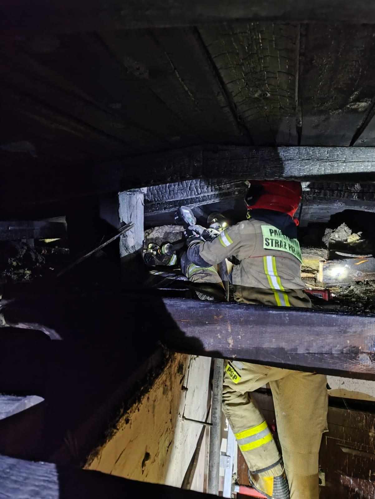 Pożar poddasza w kamienicy w Ryczywole