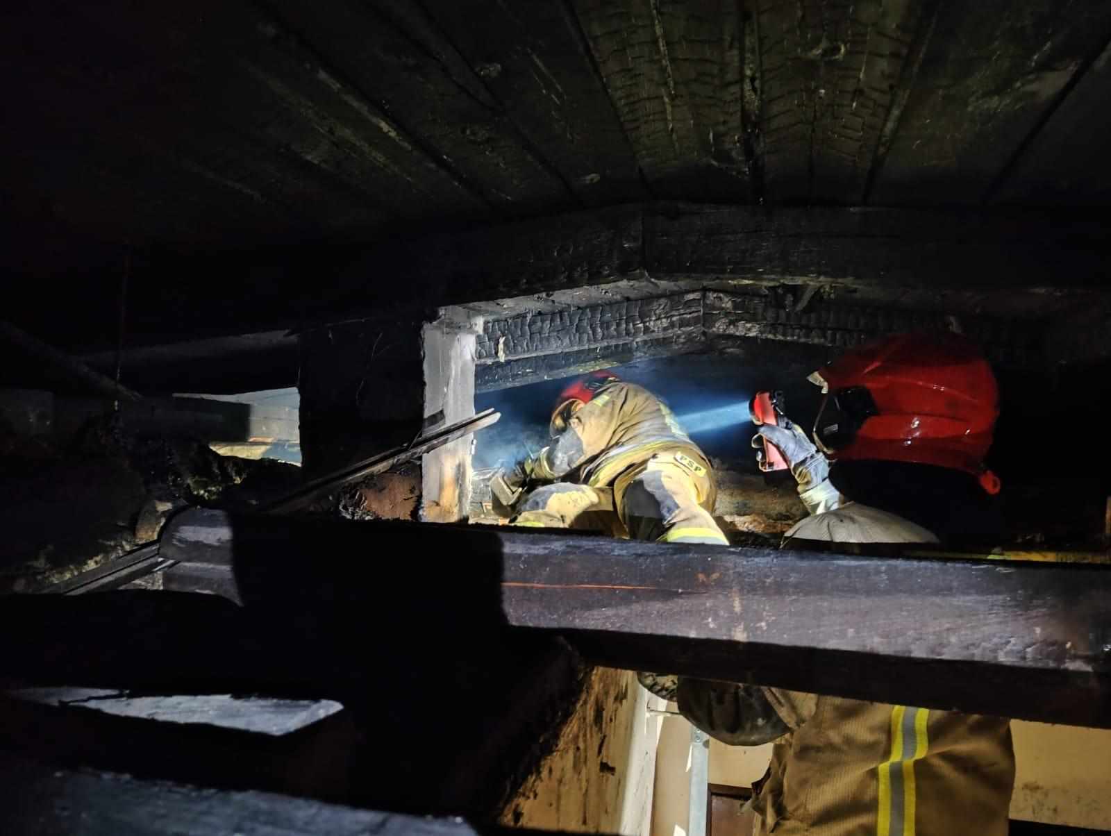 Działania strażaków polegały na zabezpieczeniu miejsca zdarzenia, ewakuacji jednej osoby, która pozostała w budynku, utworzeniu dwóch odcinków bojowych (podanie dwóch prądów wody: jeden w natarciu i jeden w obronie), organizacji łączności radiowej oraz oświetleniu terenu akcji. Po ugaszeniu pożaru działania straży polegały na rozebraniu drewnianego sufitu w pomieszczeniu kotłowni i korytarza. Równolegle podczas prowadzenia działań gaśniczych budynek został odłączony od zasilania elektrycznego. Następnie działania JOP polegały na sprawdzeniu pomieszczeń kamerą termowizyjną i miernikiem wielogazowym – brak zagrożenia.
