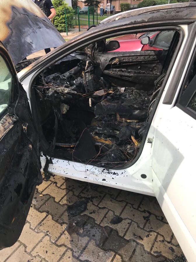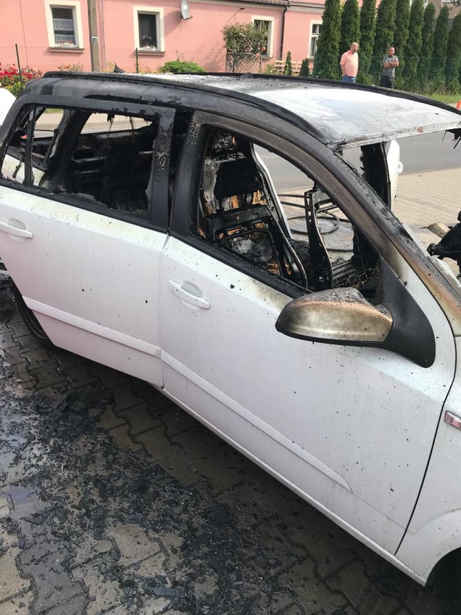 Działania strażaków polegały na zabezpieczeniu miejsca zdarzenia oraz ugaszeniu pojazdu przy użyciu jednego prądu wody w natarciu.
