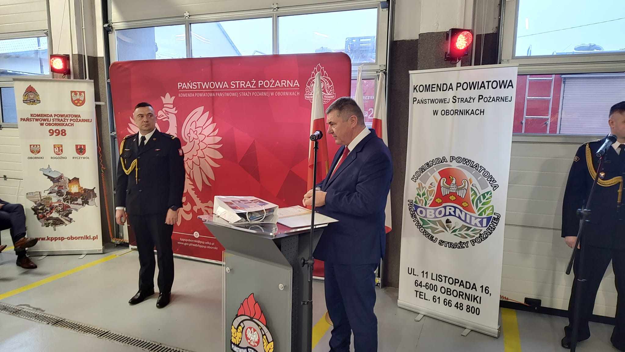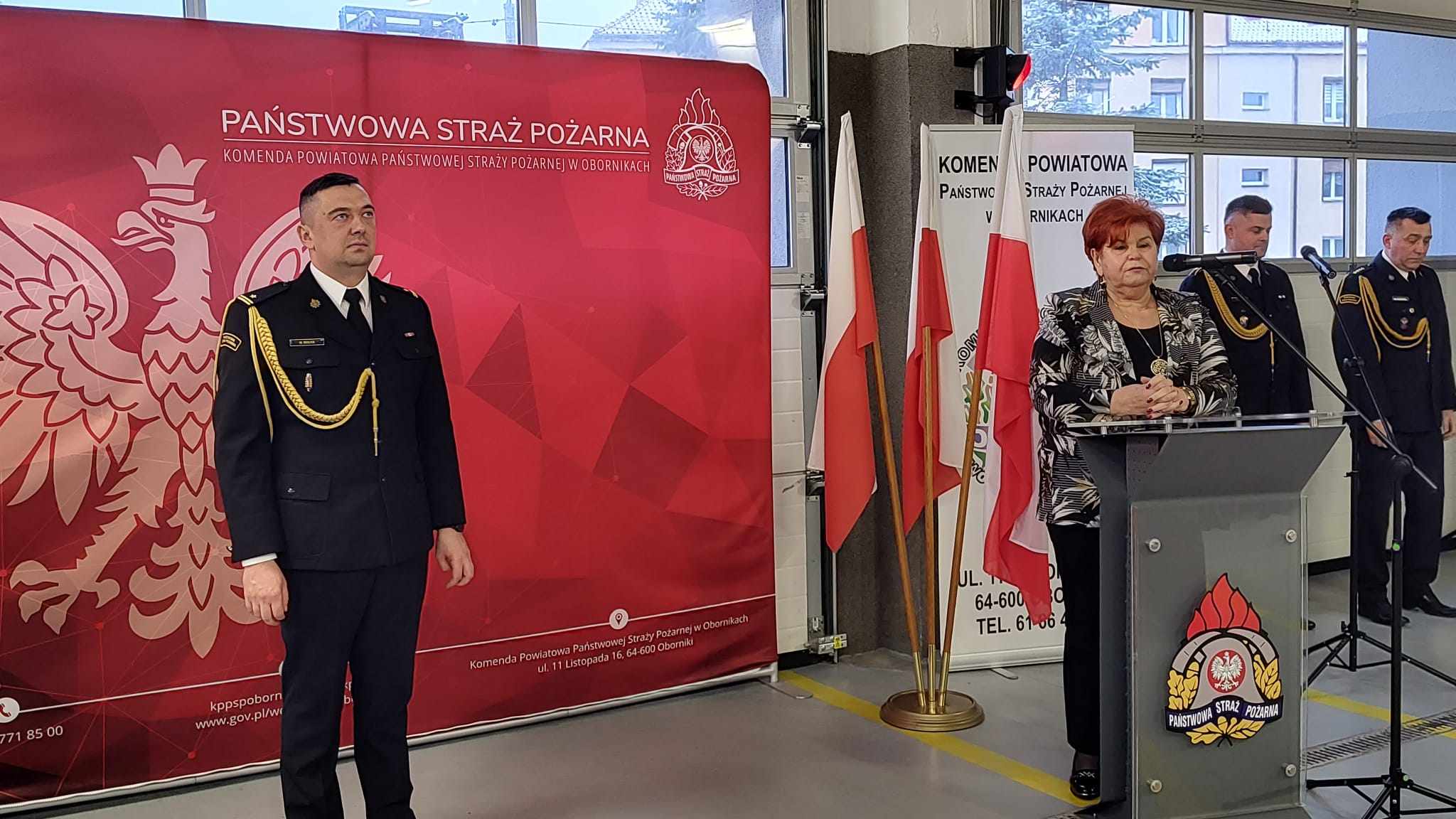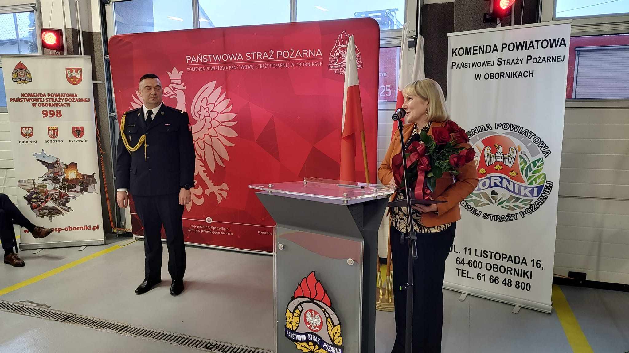 W swoim wystąpieniu Komendant Powiatowy PSP w Obornikach podziękował wszystkim za wspólną służbę, w szczególności funkcjonariuszom i pracownikom cywilnym obornickiej komendy za zaangażowanie i pomoc w codziennych obowiązkach. Zaproszonym gościom za doskonałą współpracę i wsparcie. Serdeczne podziękowania złożył także rodzinie, która zawsze wspierała go podczas pełnionych obowiązków służbowych.