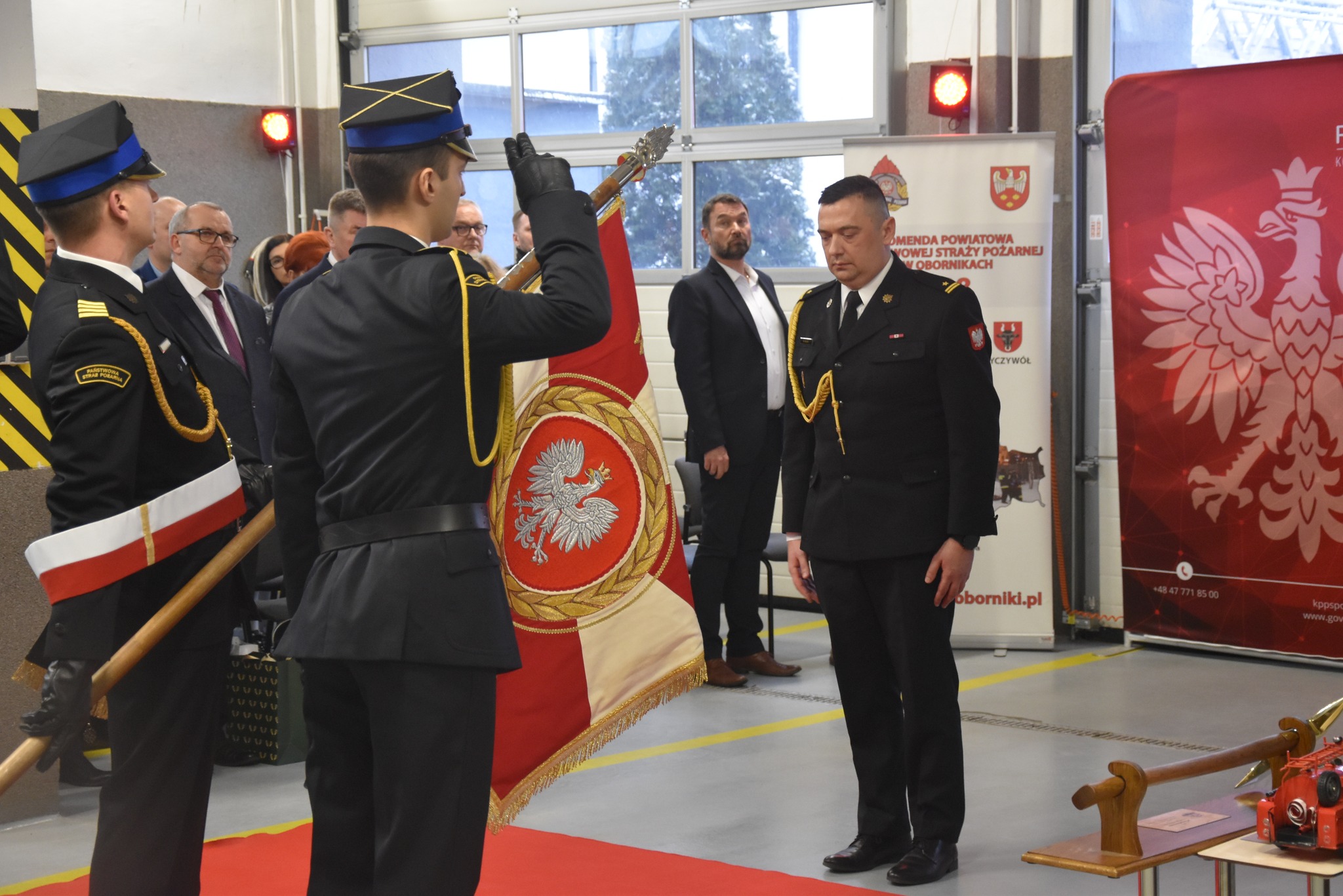 Pożegnanie Komendanta Powiatowego PSP w Obornikach ze sztandarem