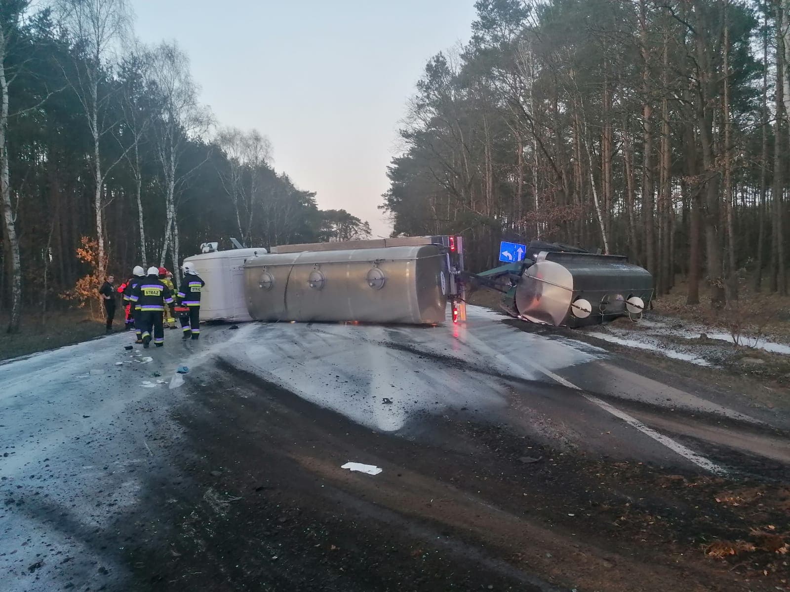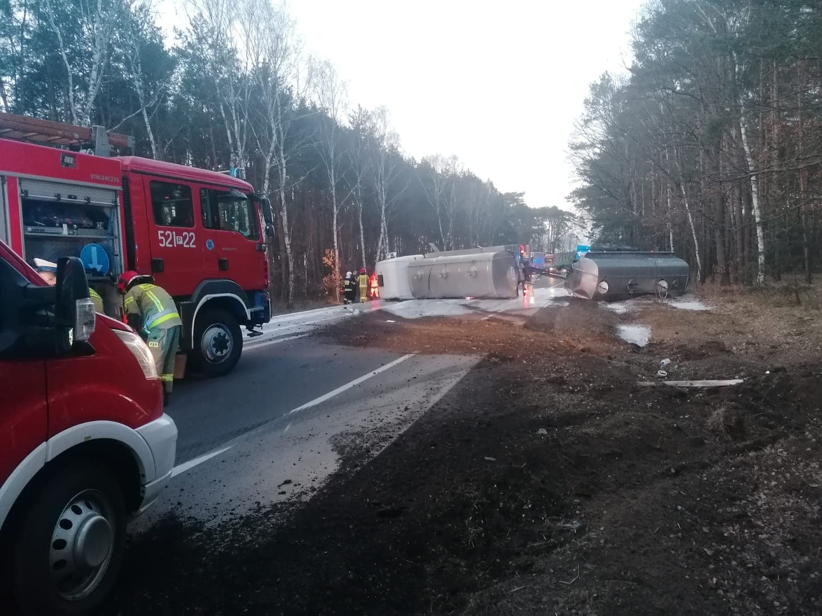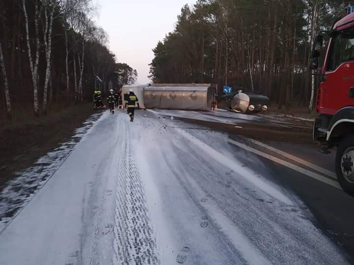 PRZEWRÓCONA CYSTERNA Z MLEKIEM ZABLOKOWAŁA DK - 11