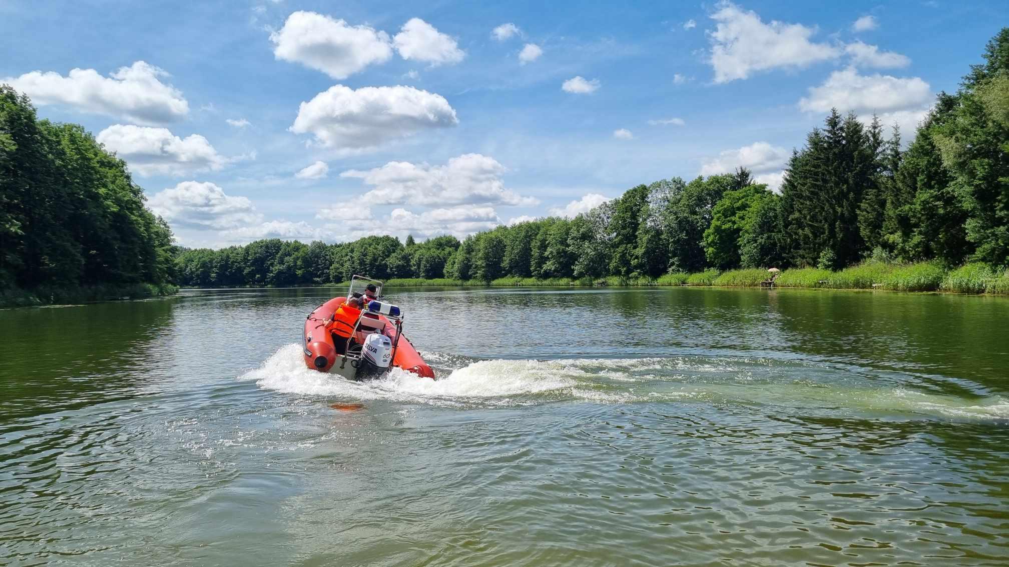 - przećwiczeniu manewrowania łodziami z napędem silnikowym i wiosłowym po akwenie.