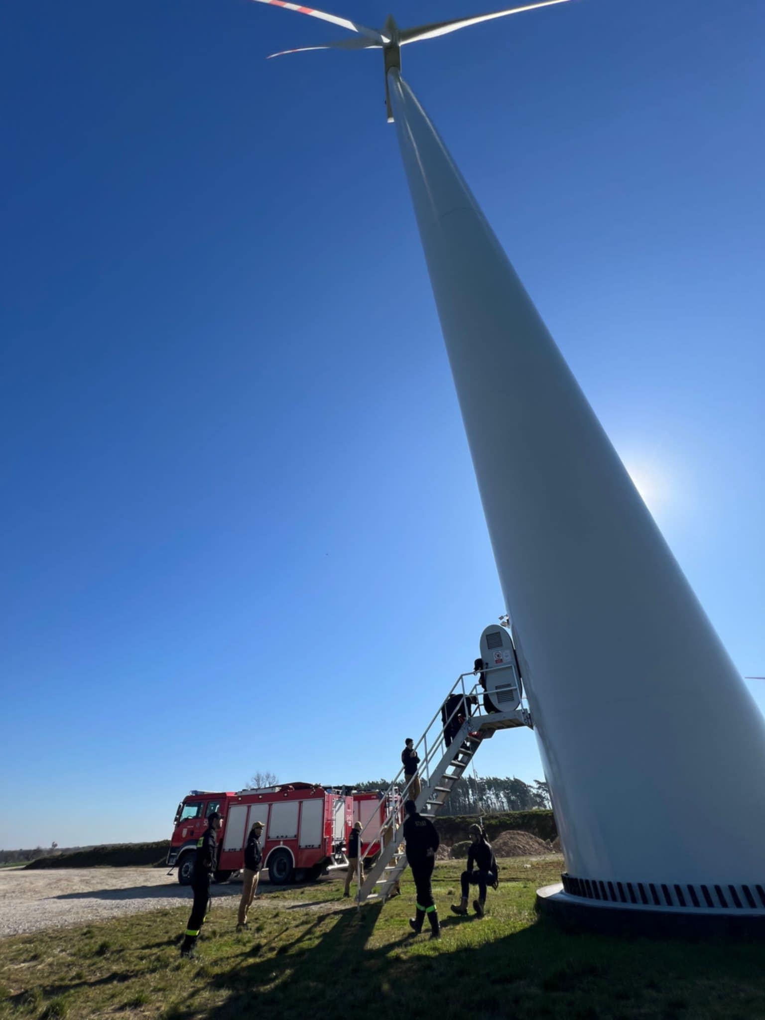 W dniach od 2 do 4 kwietnia 2025 roku funkcjonariusze Komendy Powiatowej Państwowej Straży Pożarnej w Obornikach uczestniczyli w szkoleniu poświęconym turbinom wiatrowym w miejscowości Słomowo.