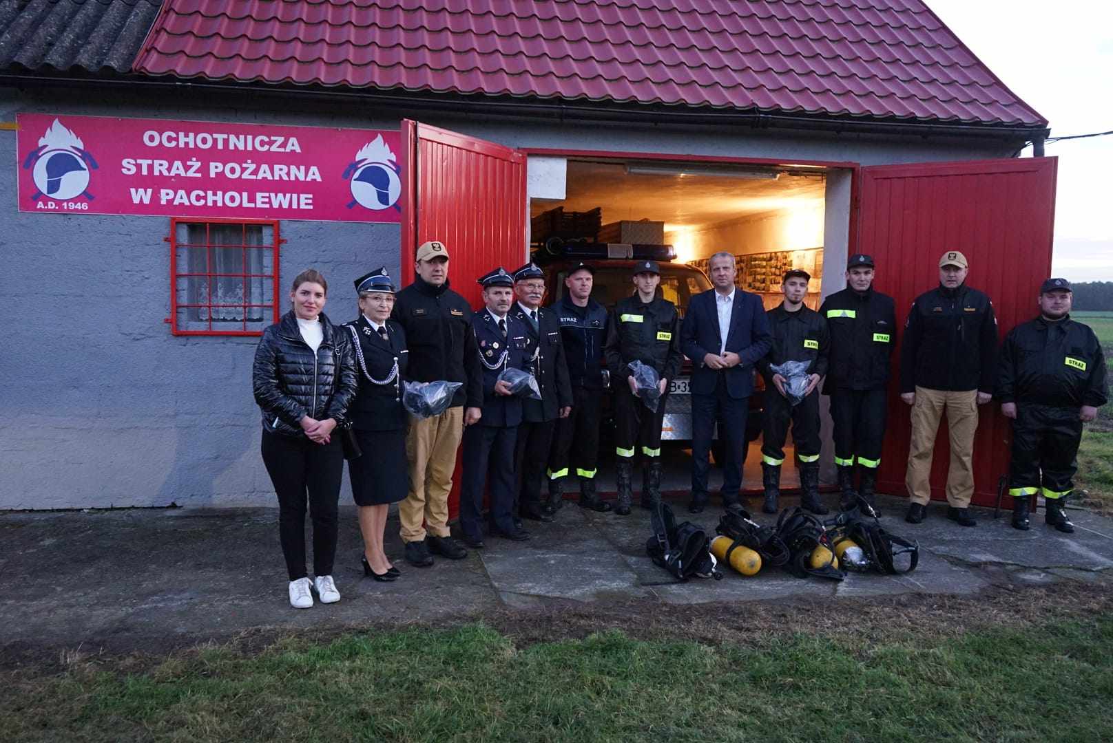 Podczas spotkania Wojewoda Wielkopolski Michał Zieliński zapoznał się z wyposażeniem jednostki Ochotniczej Straży Pożarnej w Pacholewie. Na ręce Prezes Ochotniczej Straży Pożarnej Pacholewo dh. Grażyny Klimczak przekazał sprzęt ochrony układu oddechowego – aparaty powietrzne wraz z maskami Drager, pochodzące z rezerwy Wielkopolskiego Komendanta Wojewódzkiego Państwowej Straży Pożarnej w celu poprawy gotowości bojowej jednostki. Na zakończenie spotkania Druhowie przedstawili najważniejsze kwestie związane z funkcjonowaniem jednostki Ochotniczej Straży Pożarnej w Pacholewie oraz plany związane z inwestycjami na przyszłość.