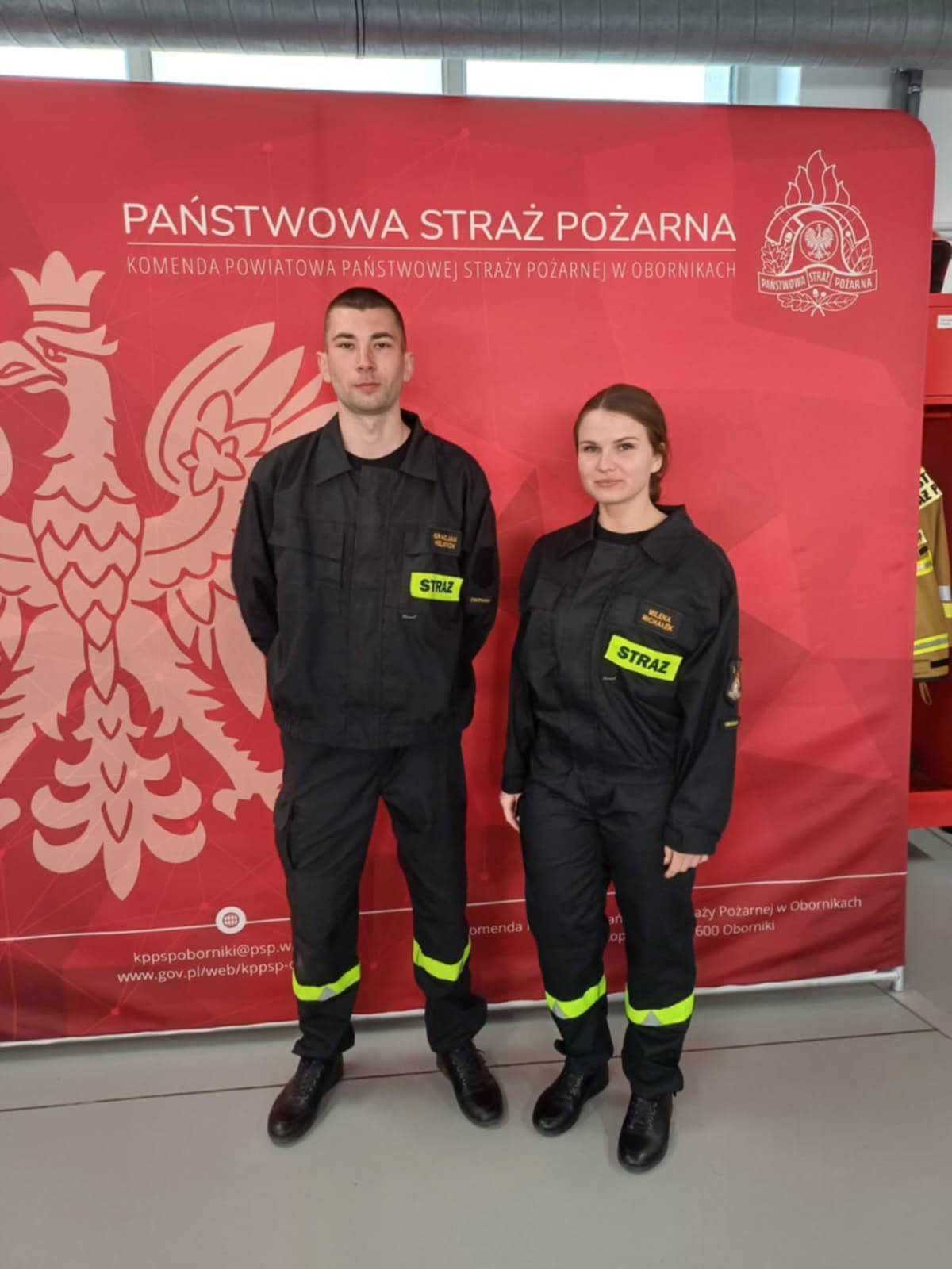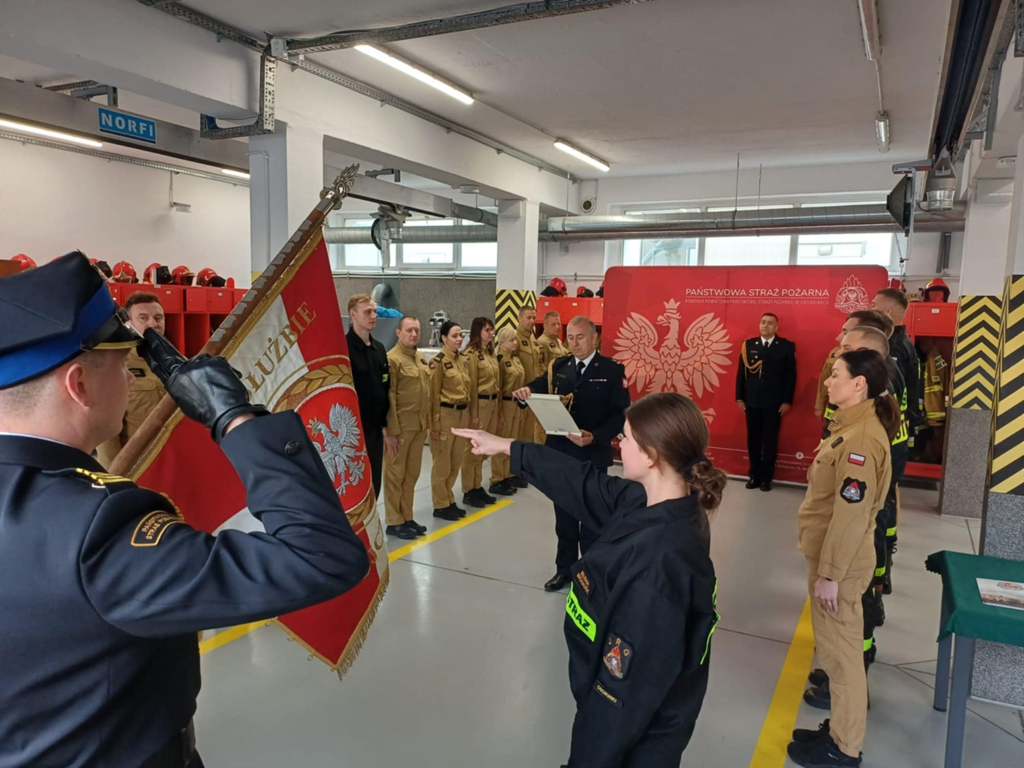 Do stanu osobowego obornickiej komendy dołączyli: str. Milena Michałek oraz str. Gracjan Helwich. Ślubowanie, zgodnie z ceremoniałem przyjął komendant powiatowy Państwowej Straży Pożarnej w Obornikach bryg. Tomasz Daszkiewicz. Po ślubowaniu nastąpiło podpisanie oraz wręczenie aktów ślubowania. Ślubowanie to bardzo uroczysta i podniosła chwila w życiu zawodowym każdego strażaka. Podejmując służbę w Państwowej Straży Pożarnej strażak składa ślubowanie według następującej roty: