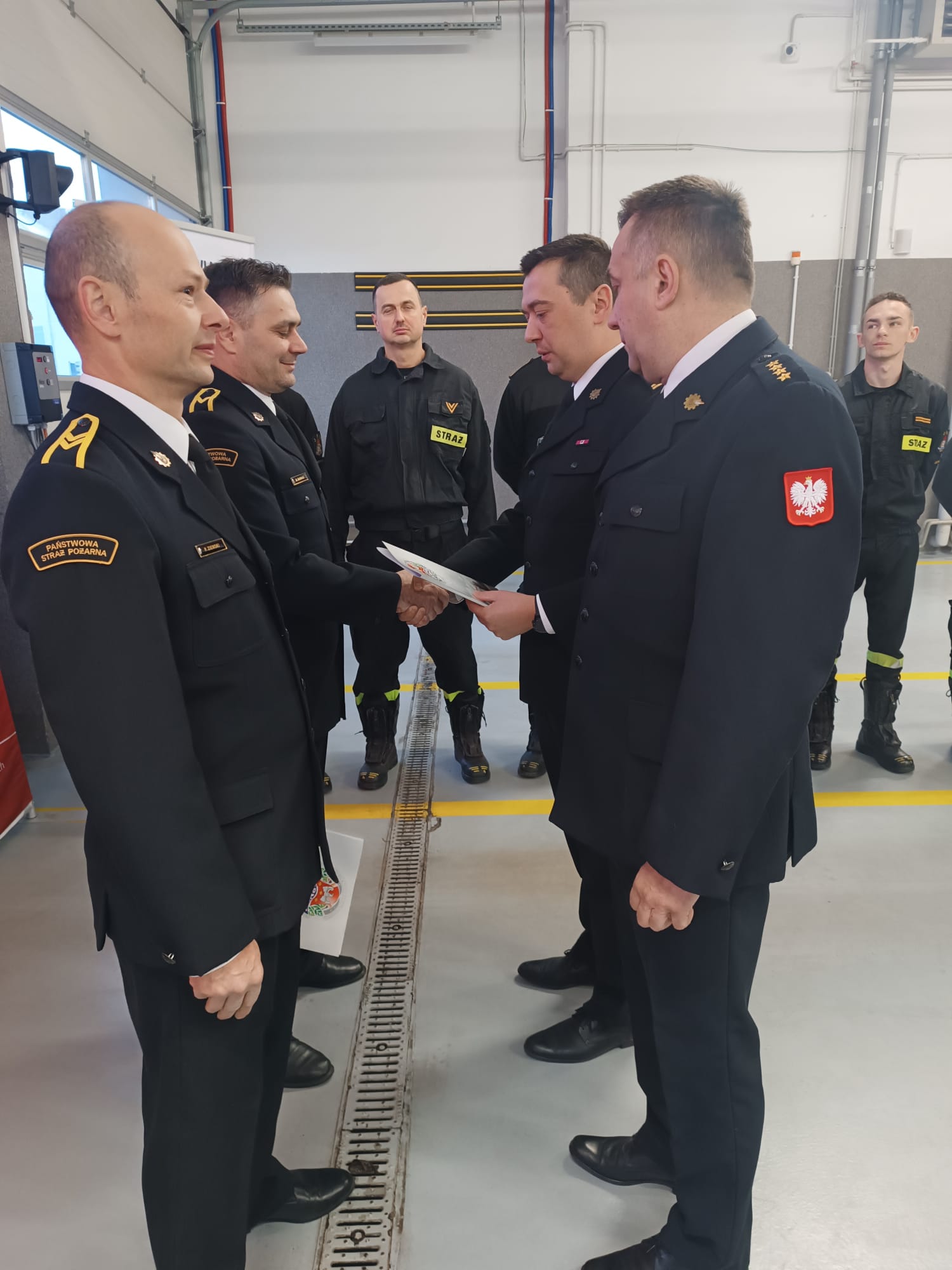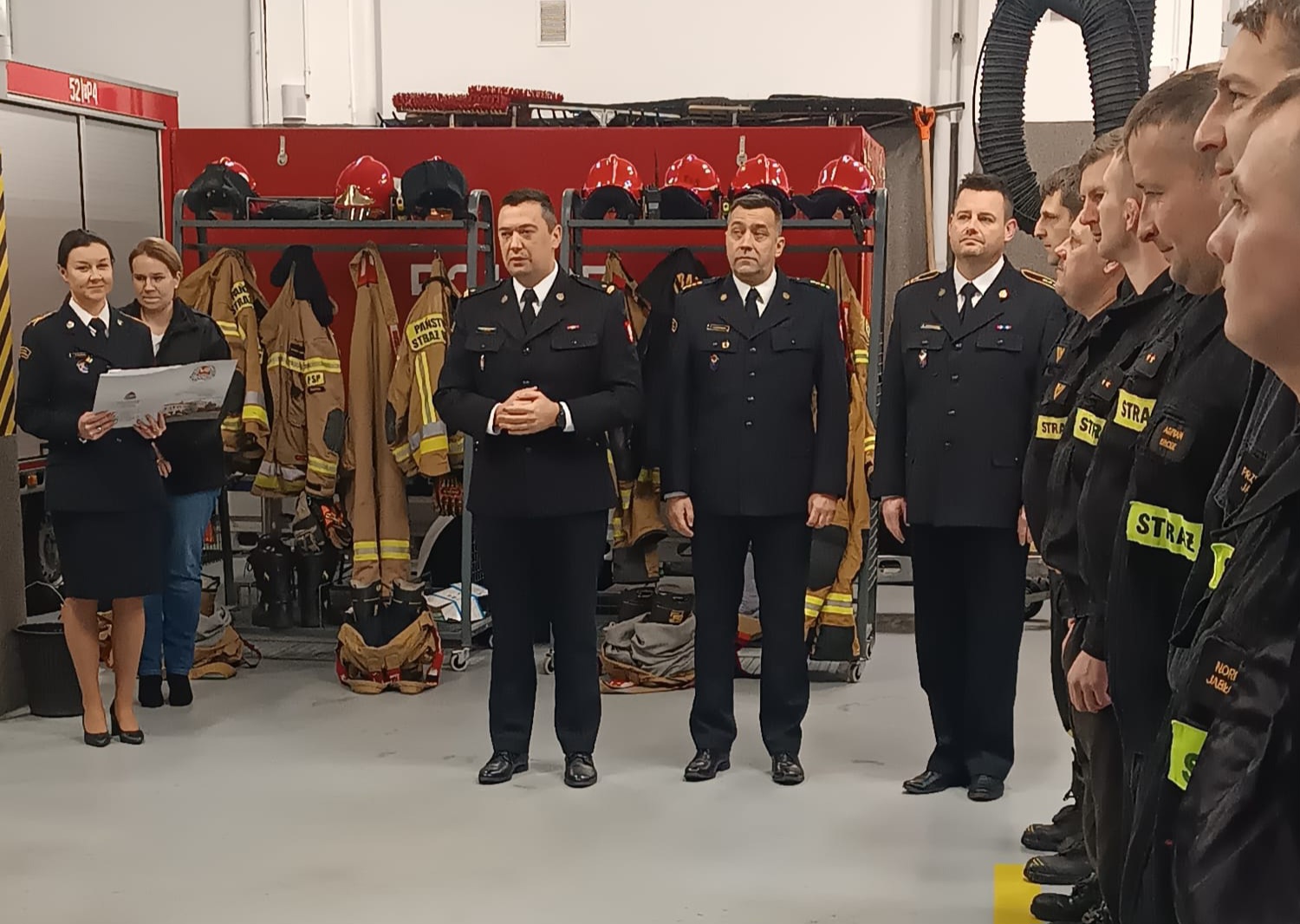 Podczas spotkania Komendant Powiatowy Państwowej Straży Pożarnej mł. bryg. Michał Mulka w obecności zgromadzonej całej kadry Komendy przybliżył wszystkim przebieg kariery zawodowej obu funkcjonariuszy w Państwowej Straży Pożarnej. Podziękował również za długoletnią oraz pełną zaangażowania służbę w Państwowej Straży Pożarnej. Podkreślił profesjonalizm, ogromną wiedzę oraz doświadczenie odchodzących strażaków podczas działań ratowniczo – gaśniczych. Następnie wręczył listy okolicznościowe oraz pamiątkowe topory strażackie.