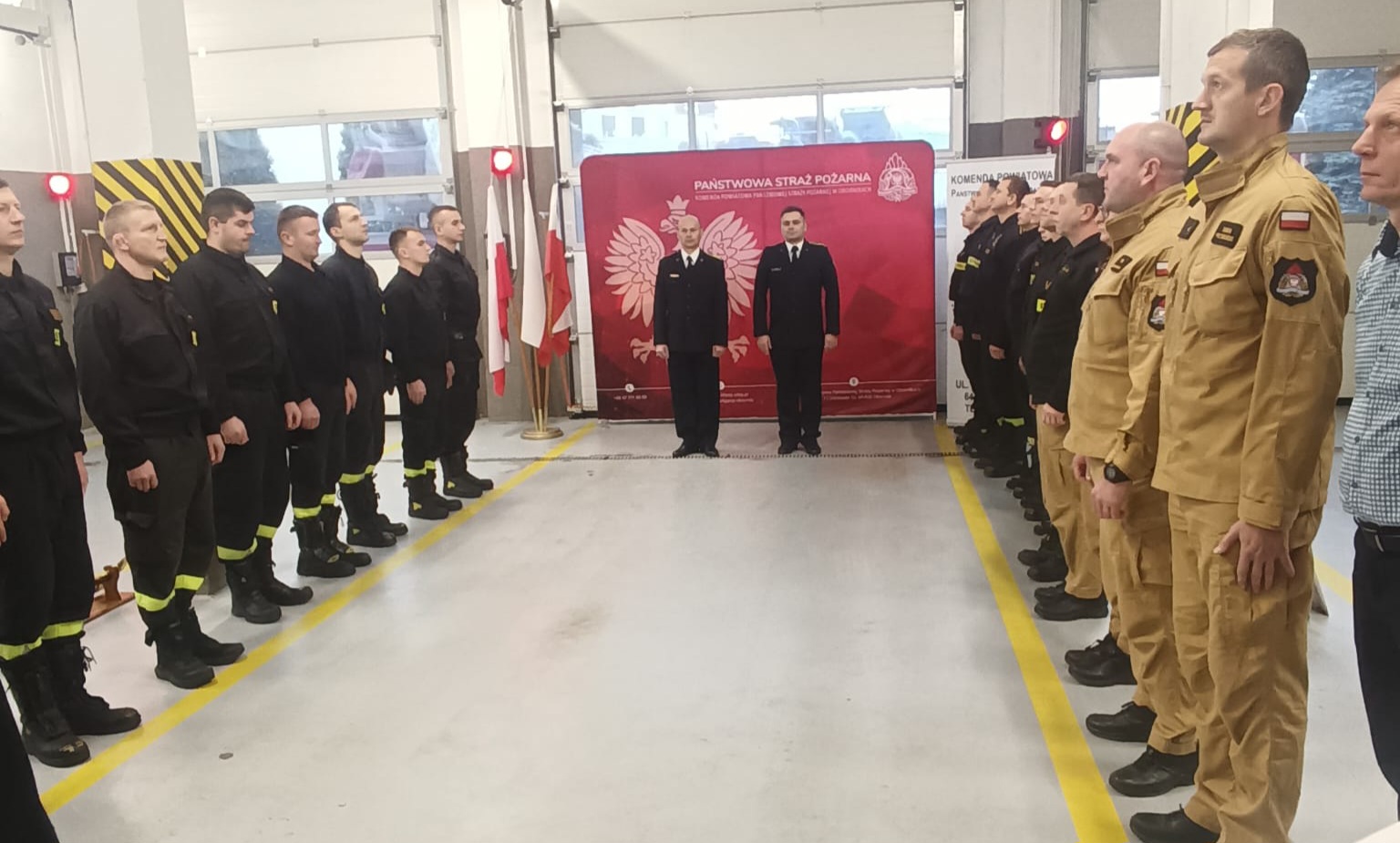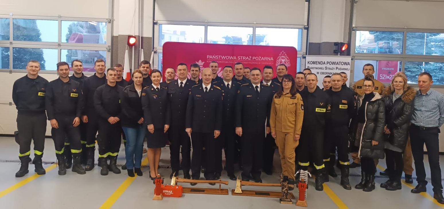 Dnia 30 listopada 2023 r. w Komendzie Powiatowej Państwowej Straży Pożarnej w Obornikach odbyła się uroczysta zmiana służby z okazji przejścia na zaopatrzenie emerytalne dwóch strażaków.