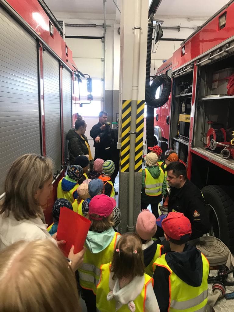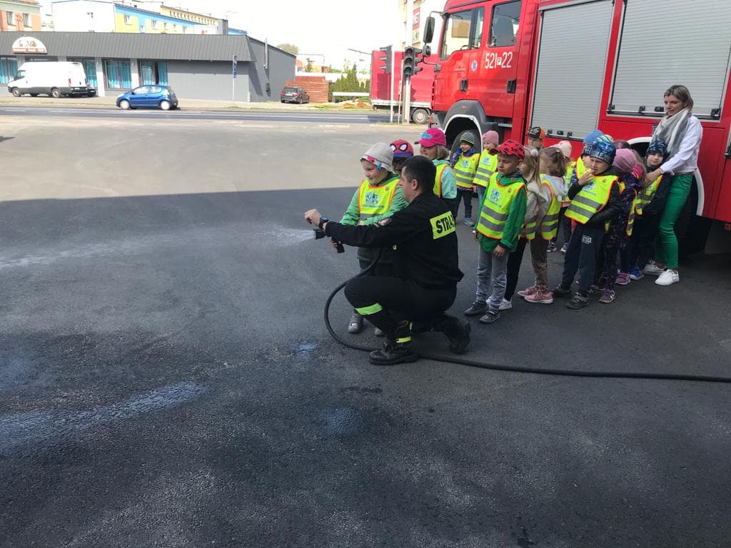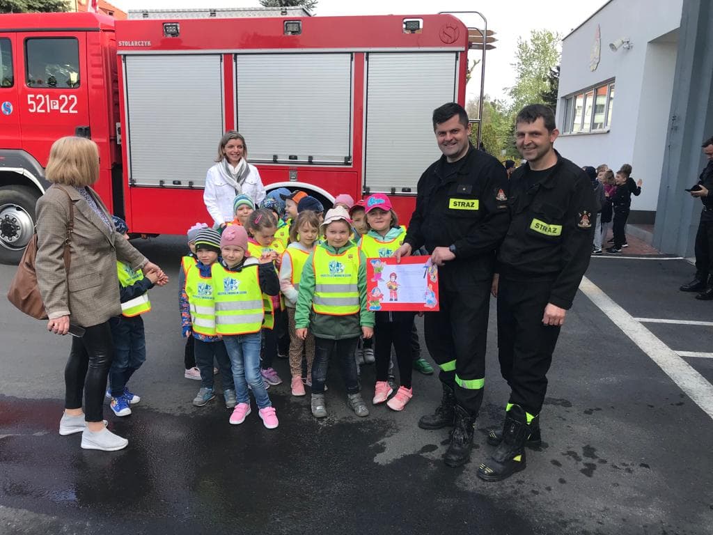 Celem spotkania było zapoznanie Maluchów ze specyfiką pracy strażaków i miejscem ich pracy, samochodami pożarniczymi oraz sprzętem będącym na ich wyposażeniu. Dzieci zostały zapoznane z zagrożeniami jakie mogą wystąpić podczas pożaru oraz zasadami zachowania podczas wystąpienia zagrożenia. Ponadto Przedszkolaki zostały zapoznane z zasadami wzywania straży pożarnej podczas występowania zagrożenia życia lub zdrowia i przekazywania informacji na międzynarodowy numer alarmowy 112. Na zakończenie wizyty strażacy zaprezentowali wyposażenie wozów strażackich oraz sprzętu pożarniczego będącego na ich wyposażeniu. Przez chwile Dzieci mogły poczuć się jak prawdziwi strażacy przymierzając hełm, wsiadając do wozu strażackiego oraz podając prąd wody pod nadzorem funkcjonariuszy PSP.