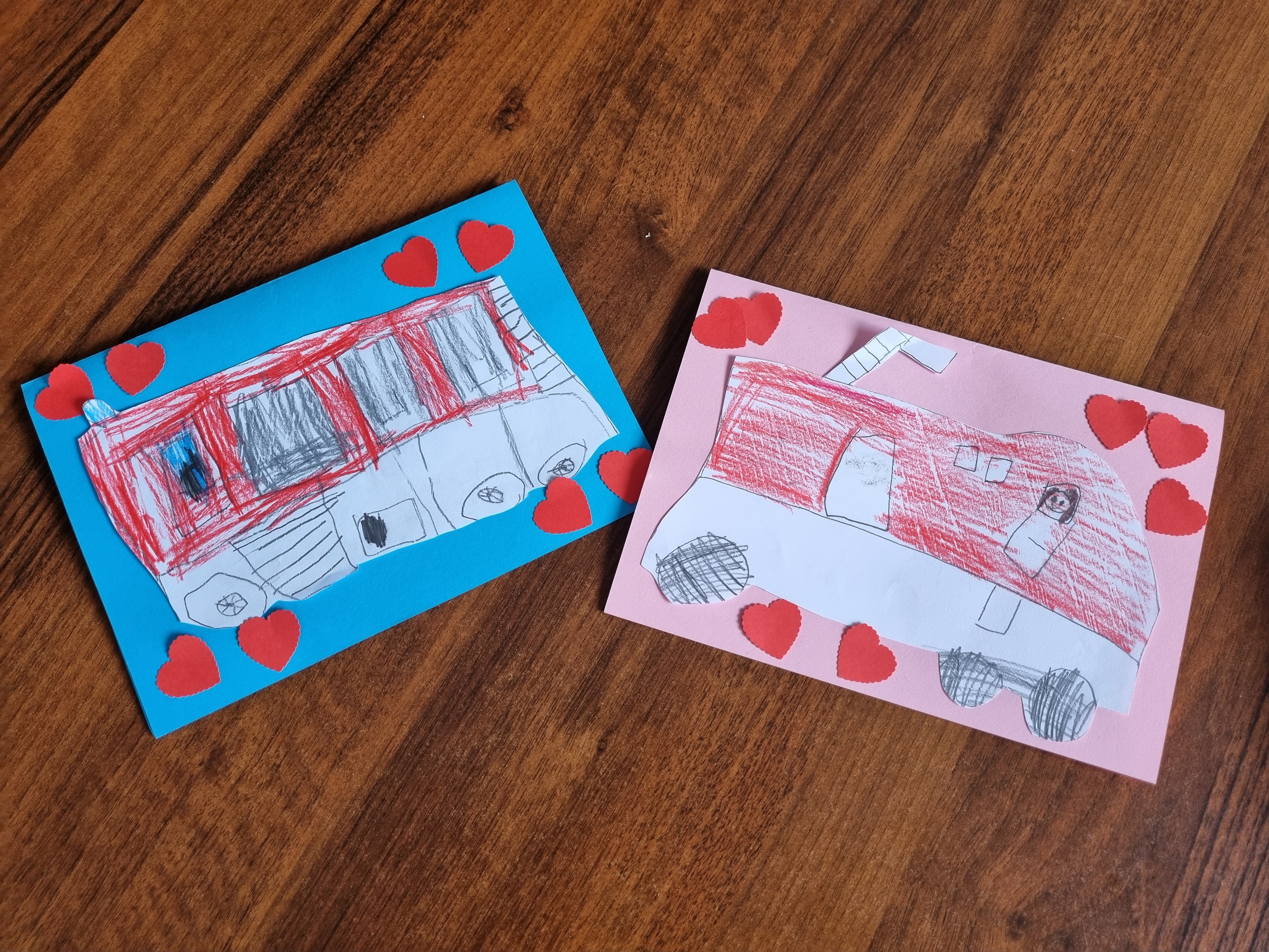 W podziękowaniu za wizytę funkcjonariusze PSP od dzieci otrzymali piękne, własnoręcznie wykonane laurki.