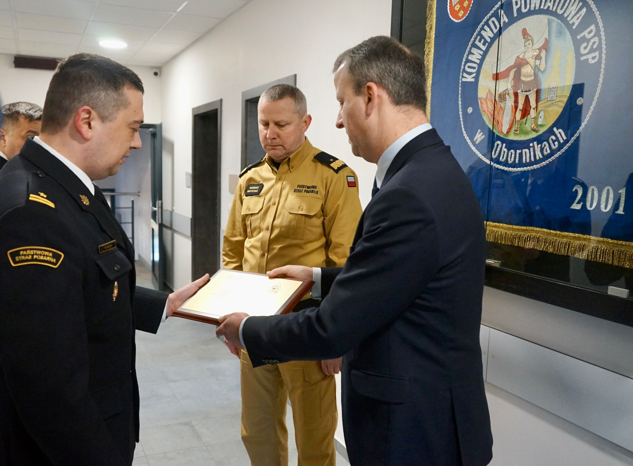 WIZYTACJA WOJEWODY WIELKOPOLSKIEGO WRAZ Z WIELKOPOLSKIM KOMENDANTEM WOJEWÓDZKIM PSP W KP PSP OBORNIKI
