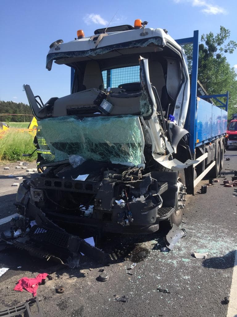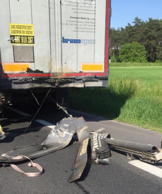 Po dojeździe na miejsce zdarzenia KDR stwierdził, że na jezdni DK – 11 doszło do najechania samochodu ciężarowego Renault Premium na tył naczepy Reisch. Kierowca Renault znajdował się uwięziony w kabinie pojazdu. Droga krajowa nr 11 była zablokowana w obu kierunkach. Na miejscu znajdował się Zspół Ratownictwa Medycznego oraz Policja.