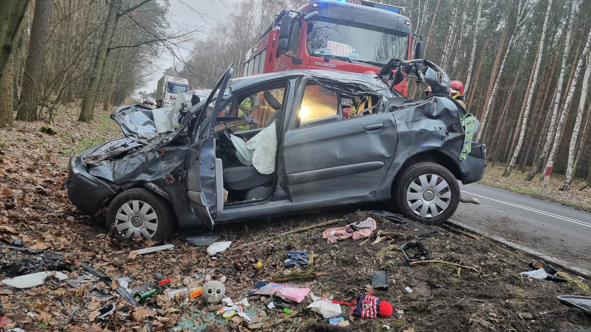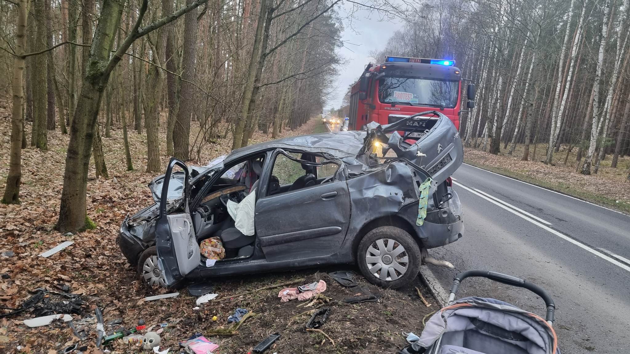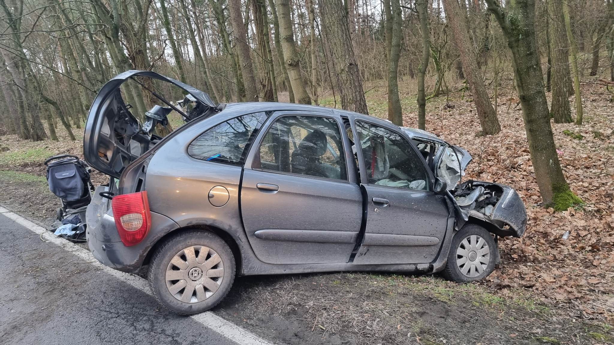 Po dojeździe na miejsce zdarzenia KDR stwierdził, że na DW178 na łuku drogi samochód osobowych marki CITROEN XSARA PICASSO wypadł z drogi i uderzył w przydrożne drzewa po czym przewrocił się na lewy bok. Z informacji uzyskanych przez świadków zdarzenia, 2 młode osoby (kobieta oraz mężczyzna) opuściły pojazd o własnych siłach przed przybyciem JOP i oddaliły się z miejsca wypadku. Decyzją Policji podjęto próbę poszukiwań podróżujących pojazdem w promieniu około 1 kilometra od miejsca zdarzenia – brak poszkodowanych. Na czas prowadzonych działań na DW178 wprowadzono ruch wahadłowy. Na miejscu znajdowała się Policja.