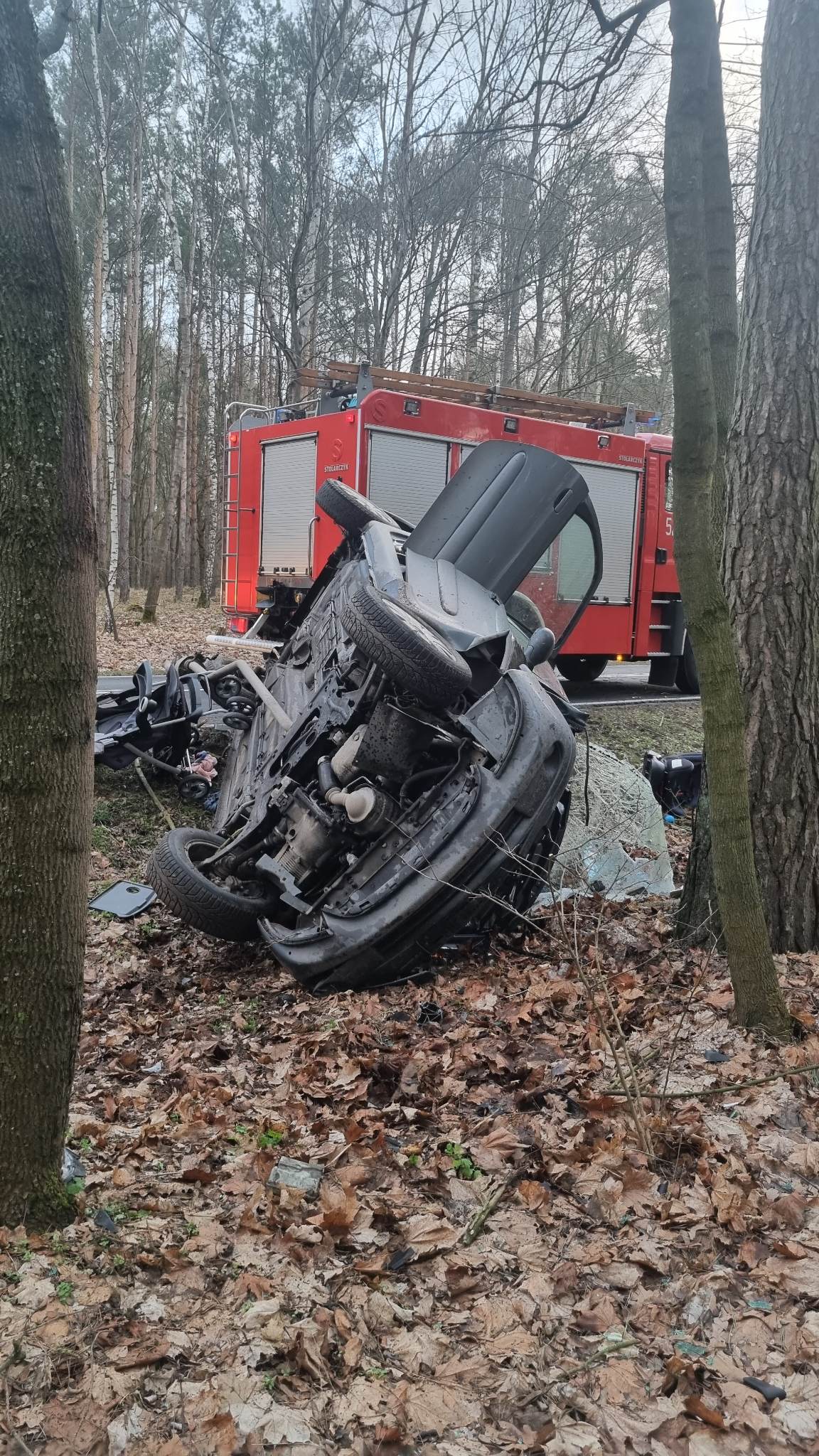 Działania strażaków polegały na zabezpieczeniu miejsca zdarzenia, odłączeniu akumulatora, postawieniu na koła, przemieszczeniu pojazdu na pobocze oraz przeszukaniu pobliskiego lasu.