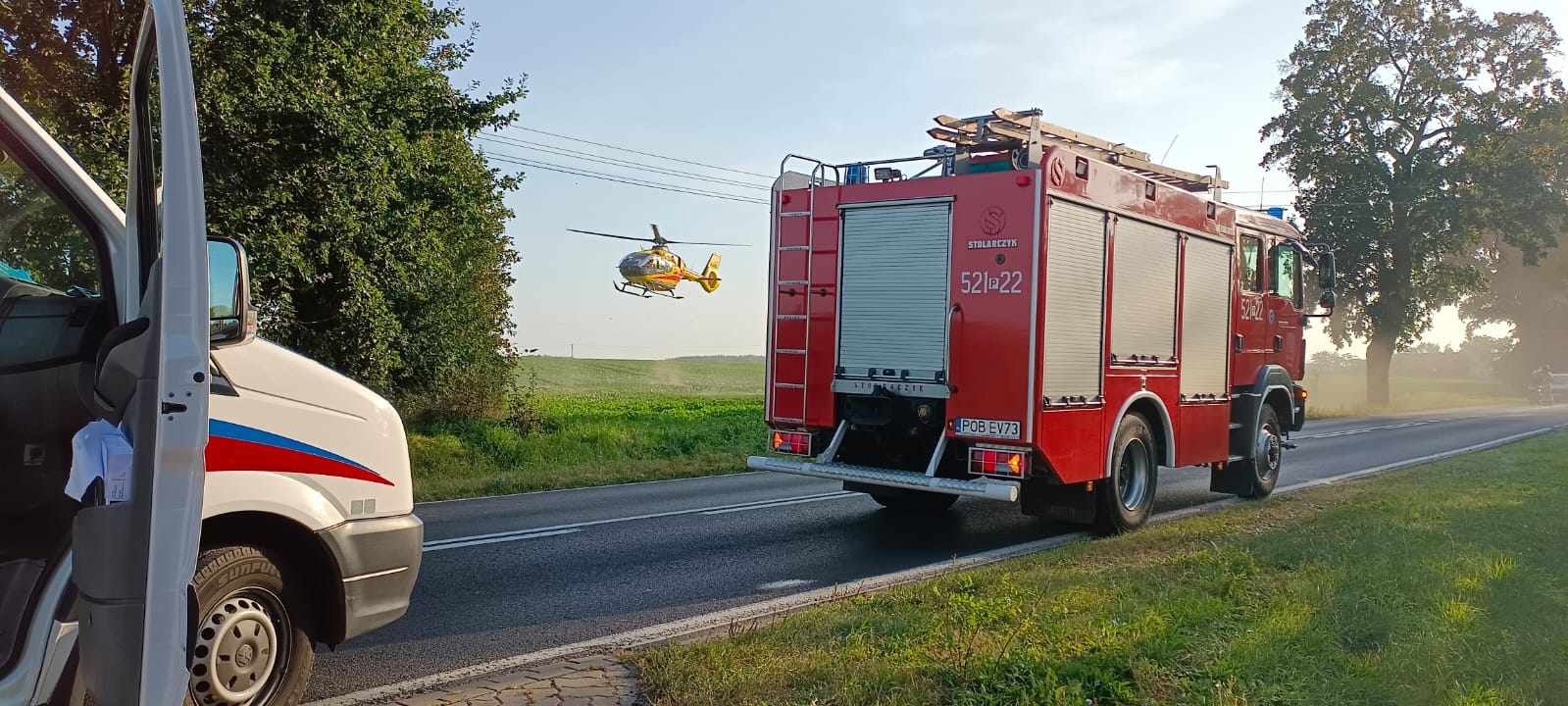Po dojeździe na miejsce zdarzenia KDR stwierdził, że kierujący samochodem osobowym marki FORD MONDEO zjechał na przeciwległy pas ruchu a następnie uderzył w płot ogrodzeniowy niezamieszkałej posesji znajdującej się przy drodze. Pojazd znajdował się na terenie posiadłości prywatnej a w nim znajdował się nieprzytomny kierowca. Pojazdem podróżowała jedna osoba i wymagała udzielenia pomocy medycznej. Osoba poszkodowana po wydobyciu z pojazdu została przekazana Zespołowi Ratownictwa Medycznego a następnie przetransportowana śmigłowcem LPR do szpitala w Poznaniu. Na czas prowadzenia działań ruch na drodze został wstrzymany w obu kierunkach. Na miejscu obecny był Zespół Ratownictwa Medycznego, Lotnicze Pogtowie Ratunkowe oraz Policja.