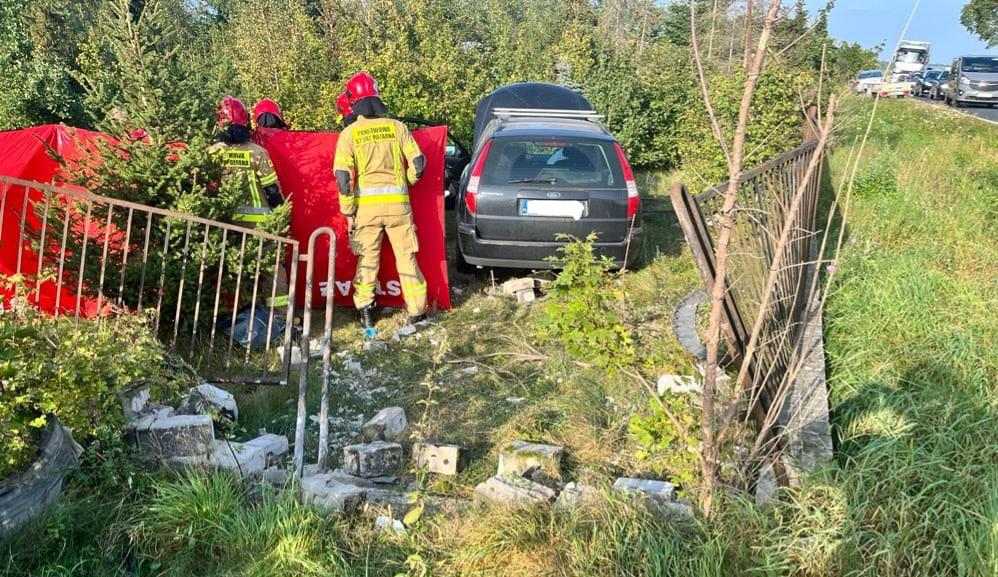 WYPADEK SAMOCHODU OSOBOWEGO W PRUŚCACH