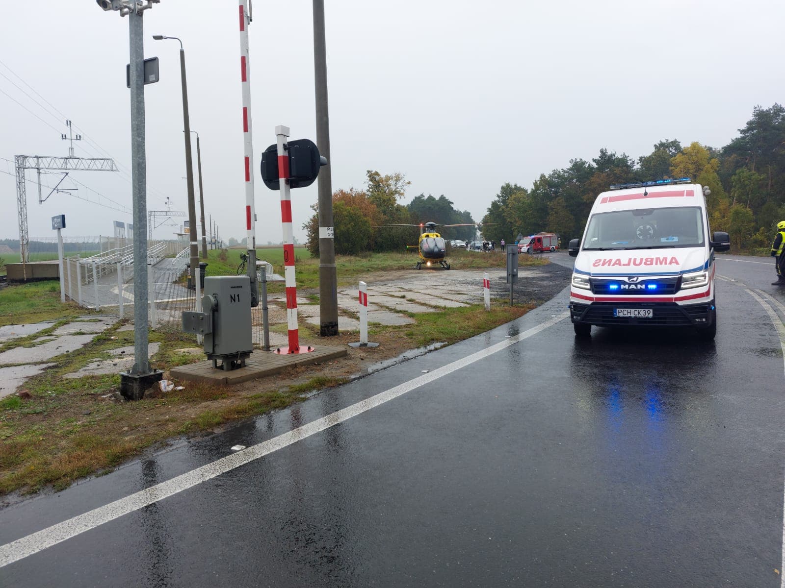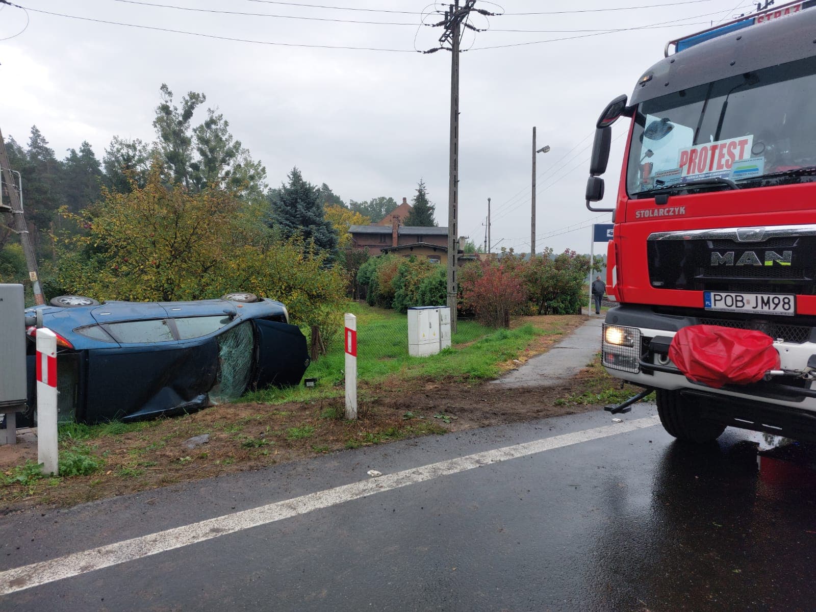 Po dojeździe na miejsce zdarzenia KDR stwierdził, że za przejezdem kolejowym, na poboczu drogi krajowej nr 11 znajduje się samochód osobowy marki NISSAN Almera leżący na lewym boku. Podróżujący nim pasażerowie (4 osoby) opuściły pojazd o własnych siłach przed przybyciem JOP. Uczestnicy zdarzenia po przebadaniu przez lekarza z ZRM odmówili przetransportowania do szpitala. Na czas prowadzonych działań ruch drogą krajową nr 11 odbywał się wahadłowo. Na miejscu znajdował się Zspół Ratownictwa Medycznego, Lotnicze Pogtowie Ratunkowe oraz Policja.