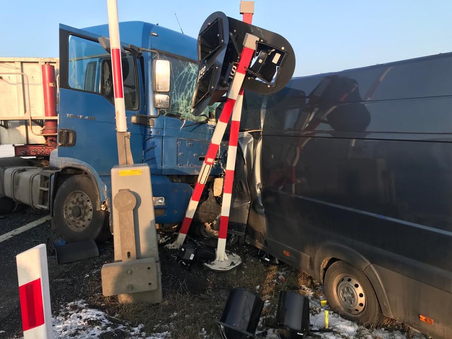 Po dojeździe na miejsce zdarzenia KDR stwierdził, że na prostym odcinku drogi krajowej nr 11 przy przejeździe kolejowym doszło do czołowego zderzenia samochodu dostawczego marki FIAT DUCATO z samochodem ciężarowym marki MAN. Kierujący samochodem ciężarowym opuścił pojazd o własnych siłach przed przybyciem JOP i w początkowej fazie działań nie wymagał udzielenia pomocy medycznej. Kierujący busem znajdował się w pojeździe i wymagał udzielenia pomocy medycznej. Do zdarzenia zadysponowano LPR lecz ze względu na warunki pogodowe śmigłowiec nie doleciał. Pojazdy nie przewoziły żadnych materiałów niebezpiecznych. Poszkodowany z tira który w początkowej fazie nie wymagał udzielenia pomocy medycznej, po przebadaniu przez ZRM został przetransportowany do szpitala w Wągrowcu. Kierujący Fiatem został przetransportowany do szpitala w Poznaniu. Na czas prowadzonych dzialań droga krajowa była zablokowana w obu kierunkach. Na miejscu znajdował się Zspół Ratownictwa Medycznego oraz Policja.
