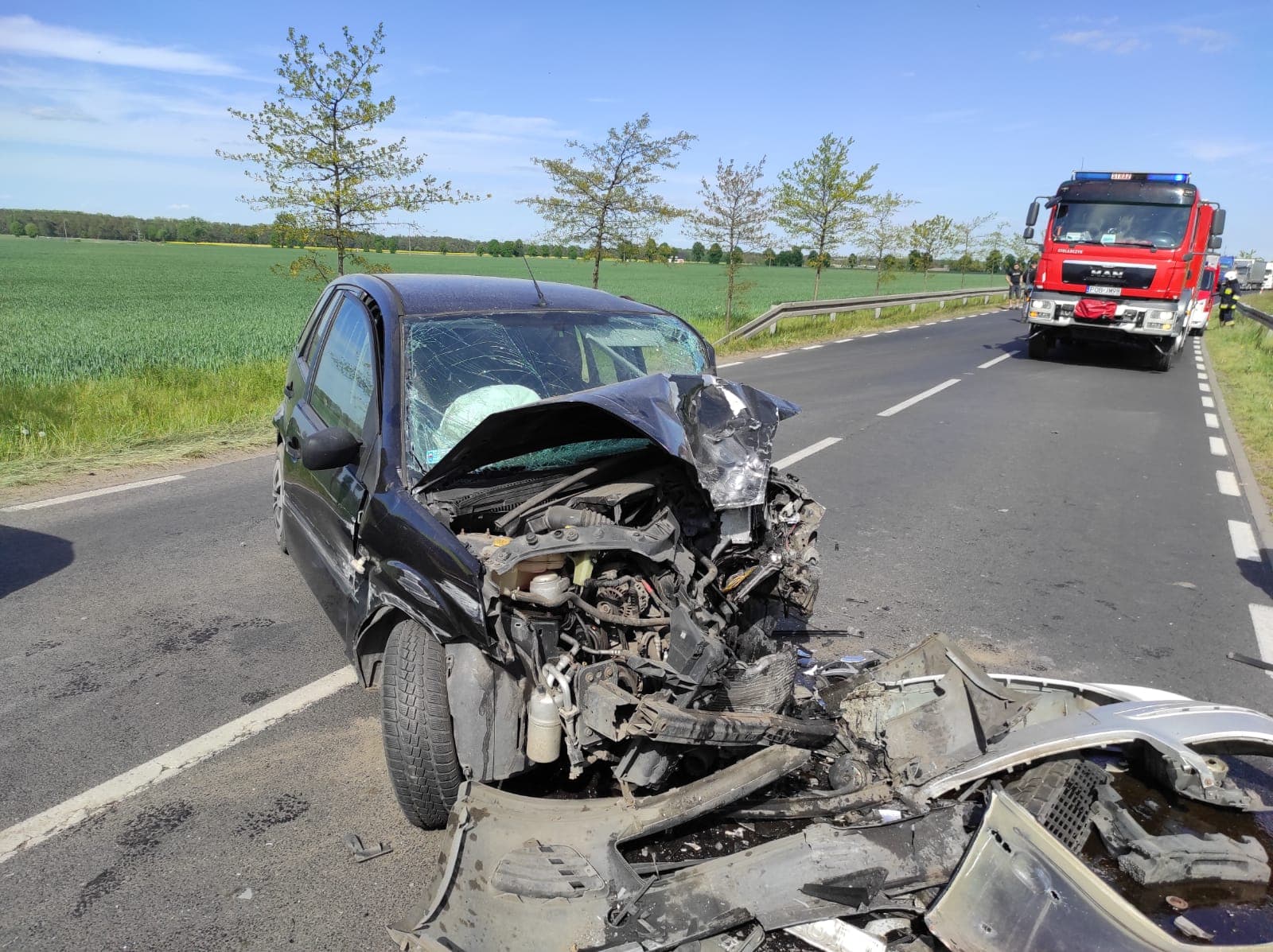 W dniu 17 maja 2022 r. o godzinie 15:33 do SKKP PSP w Obornikach wpłynęło zgłoszenie o zderzeniu dwóch samochodów osobowych marki MERCEDES A180 oraz FORD FIESTA na 32. kilometrze drogi wojewódzkiej nr 187 na wysokości miejscowości Popówko.