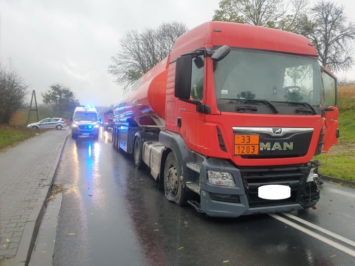 ZDERZENIE TIRA Z CYSTERNĄ NA DW 187 W OBORNIKACH