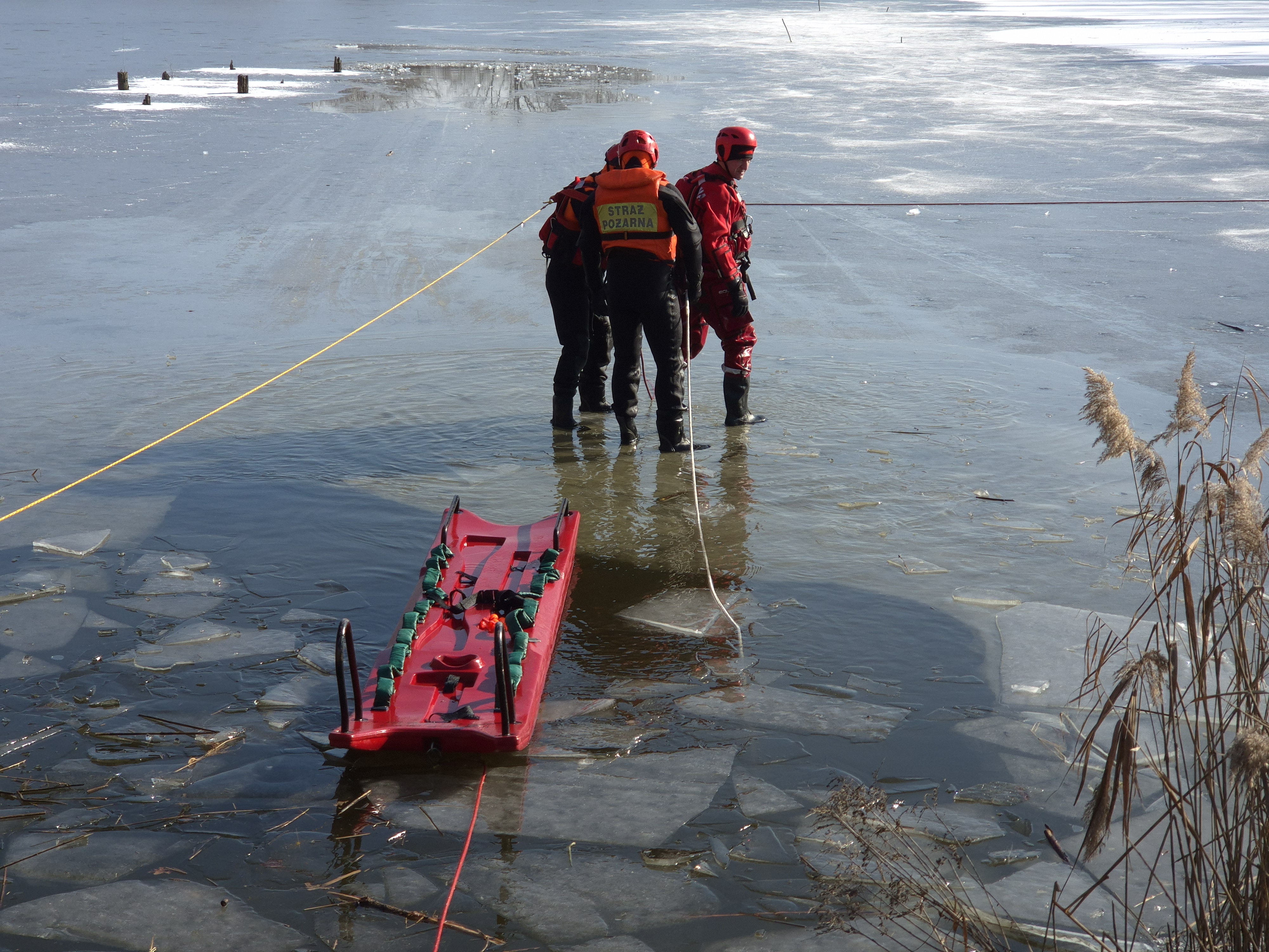 Podczas ćwiczeń strażacy wykorzystywali specjalistyczny sprzęt, w tym sanie lodowe, kombinezony do pracy w wodzie oraz liny ratownicze. Przećwiczono różne techniki ewakuacji poszkodowanych oraz współpracę między zespołami ratowniczymi w trudnych warunkach zimowych.