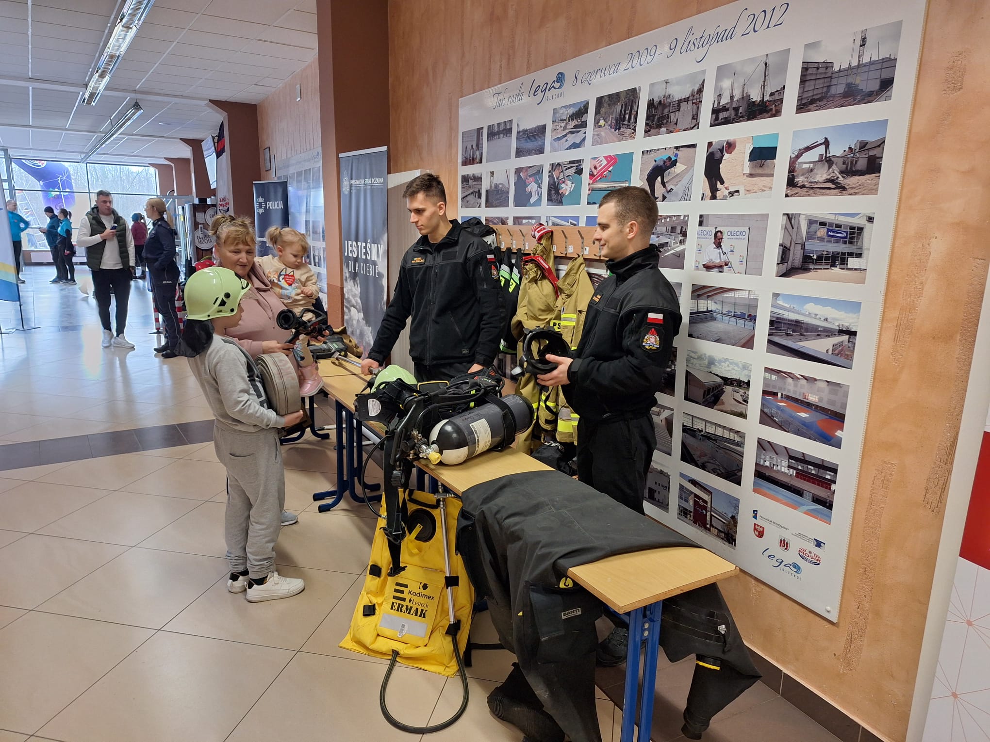 Podczas wydarzenia, które odbyło się na hali „Lega”, strażacy z KPP PSP w Olecku przygotowali stoisko edukacyjne, które cieszyło się ogromnym zainteresowaniem. Odwiedzający mieli niepowtarzalną okazję dowiedzieć się więcej o zawodzie strażaka, a także zapoznać się z wyposażeniem używanym podczas codziennej służby. Na stoisku można było: