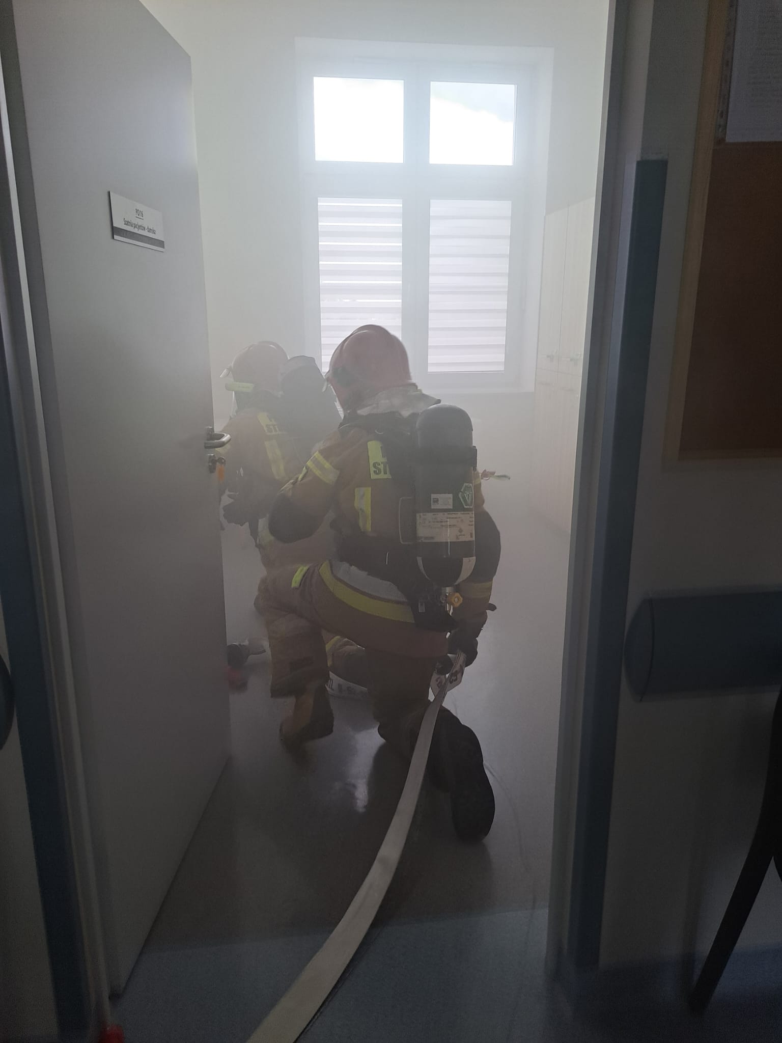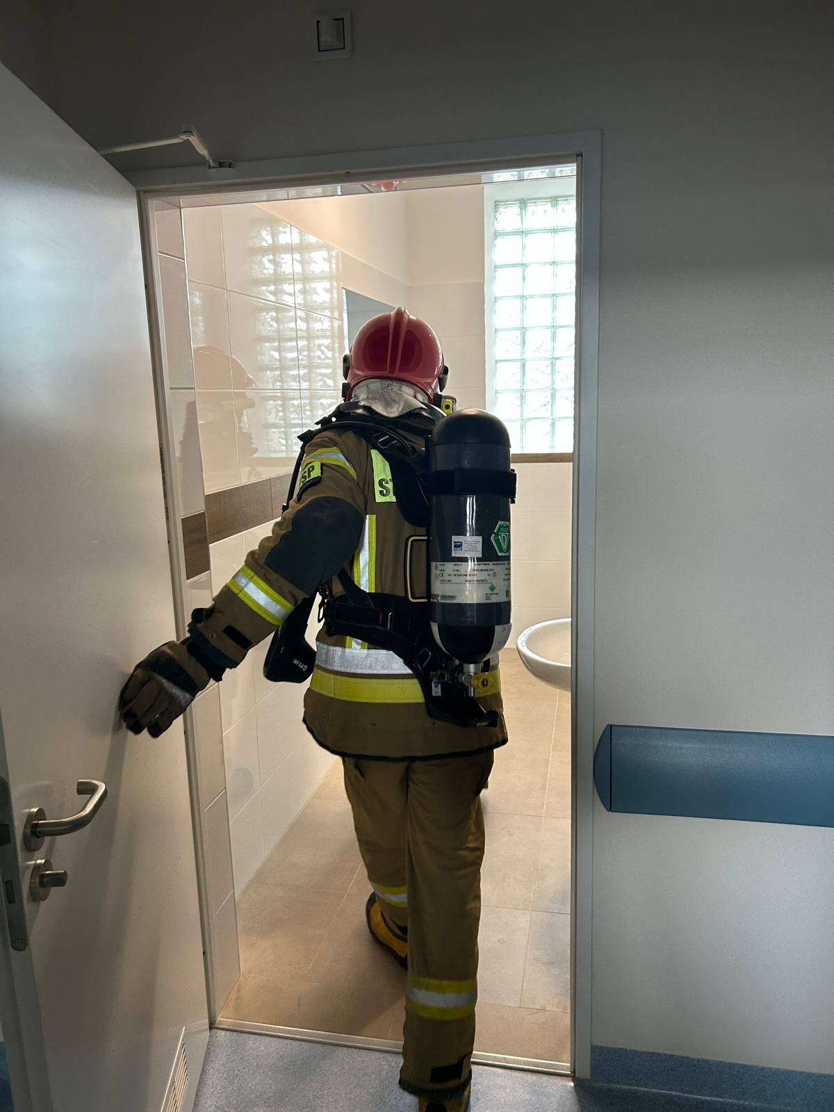 Strażacy po przeprowadzonych ćwiczeniach udali się na rozpoznanie oddziałów szpitala.