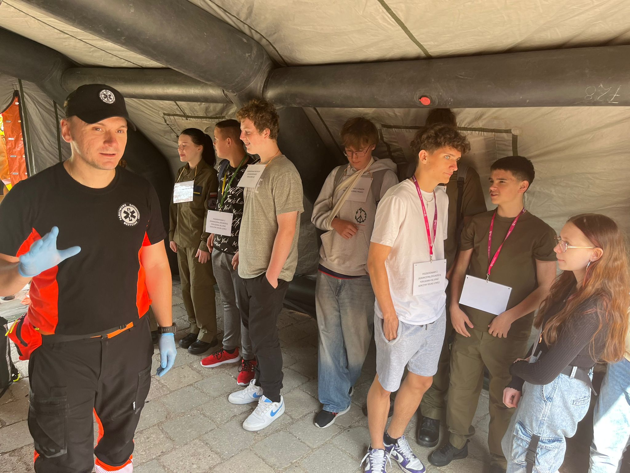rozstawienie namiotu ewakuacyjnego w punkcie zbiórki,