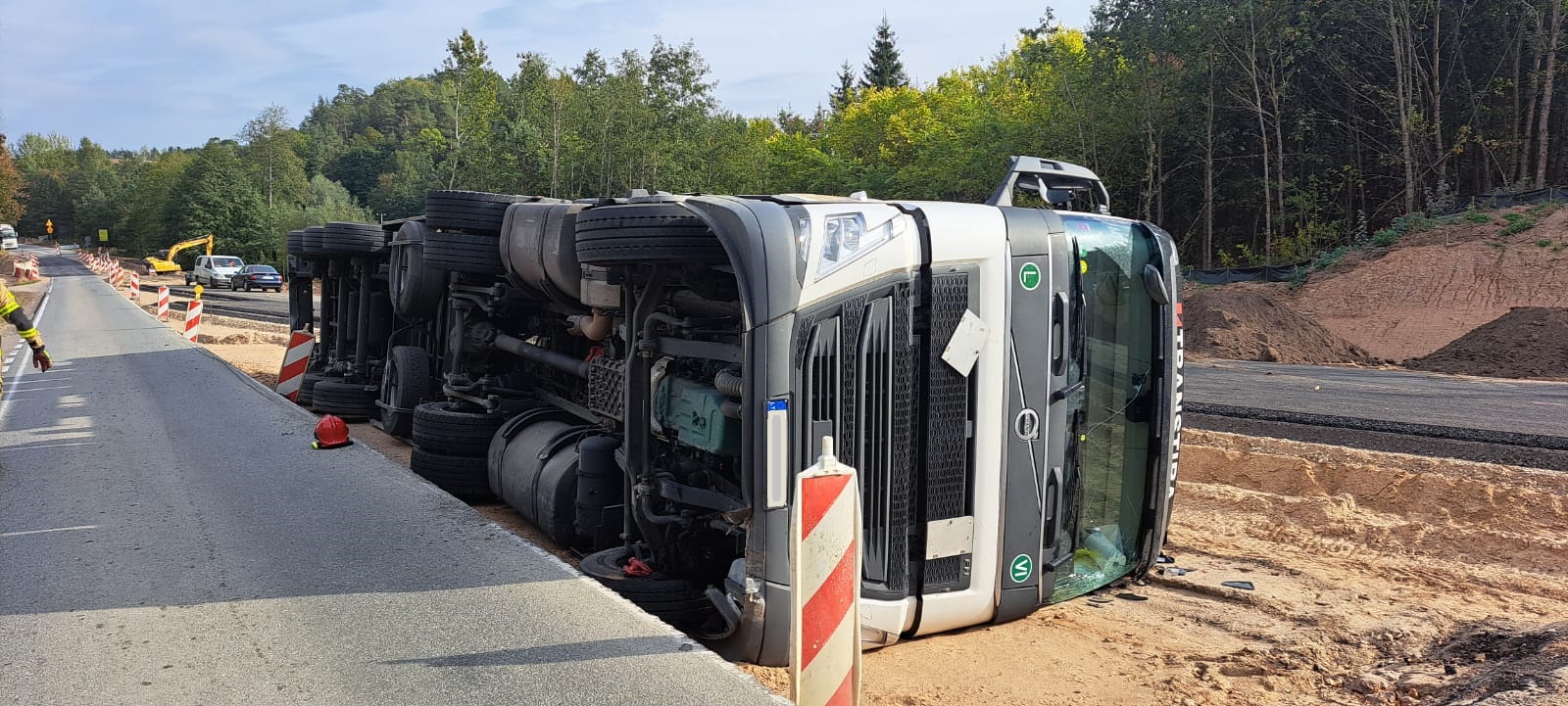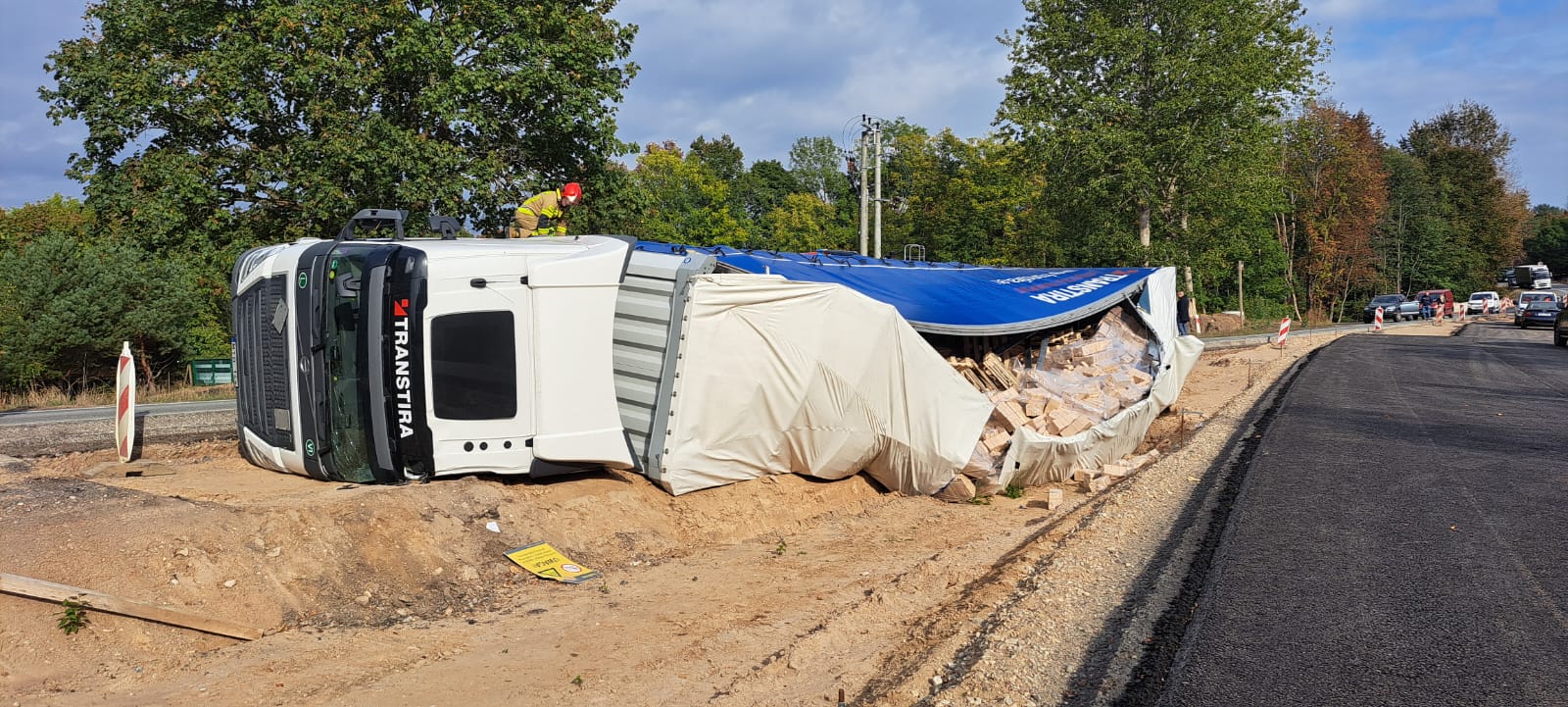 2 października 2024 roku o godzinie 14:02 do Stanowiska Kierowania Komendanta Powiatowego Państwowej Straży Pożarnej w Olecku wpłynęło zgłoszenie o wypadku drogowym z udziałem samochodu ciężarowego na remontowanym odcinku drogi krajowej DK 65. Na miejsce natychmiast zadysponowano zastępy Jednostek Ochrony Przeciwpożarowej.