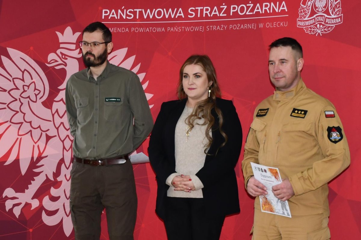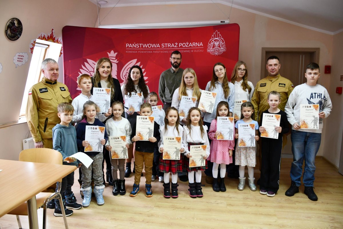 14 stycznia 2026 r. w Komendzie Powiatowej Państwowej Straży Pożarnej w Olecku odbyło się uroczyste wręczenie nagród laureatom powiatowych eliminacji Ogólnopolskiego Konkursu Plastycznego „Zapobiegajmy pożarom”.