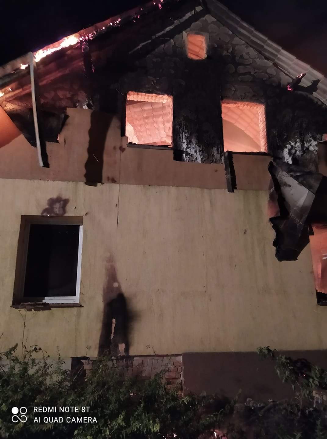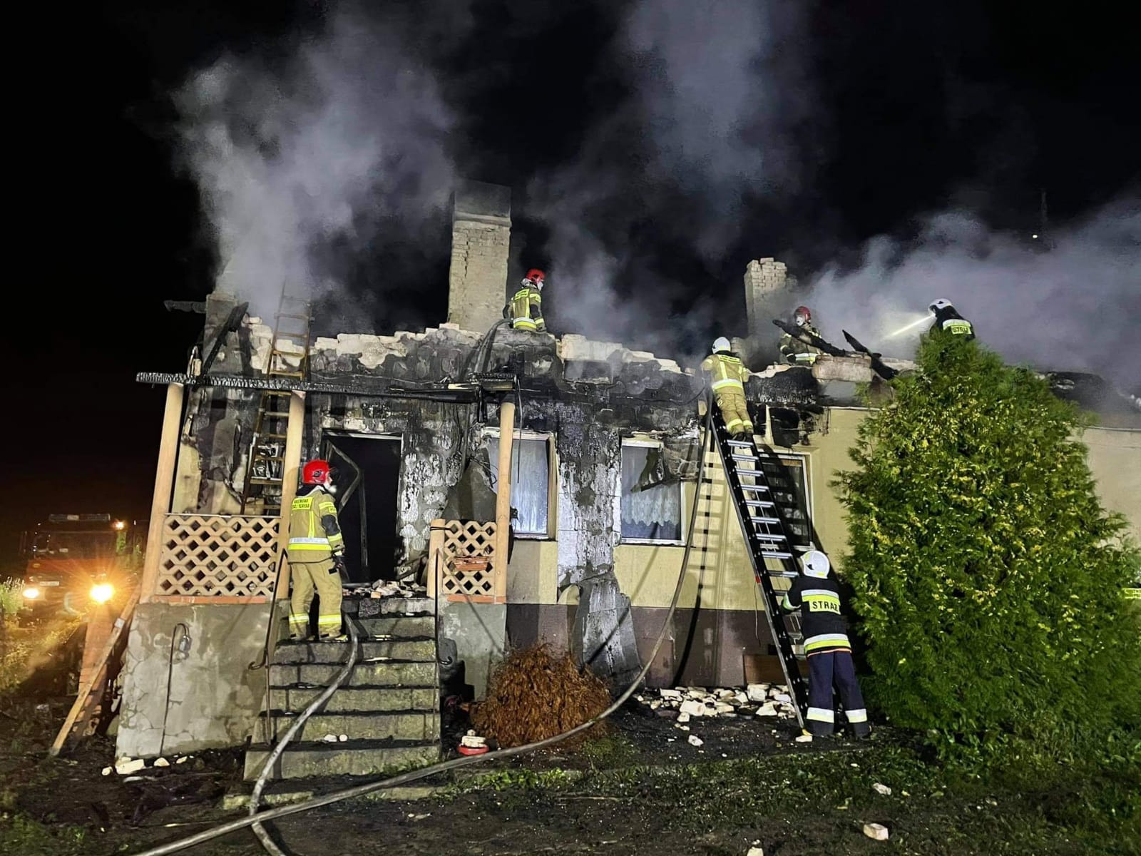 Po dojeździe pierwszych zastępów straży pożarnej na miejsce zdarzenia okazało się, że dach budynku jednorodzinnego jest objęty całkowicie pożarem.
