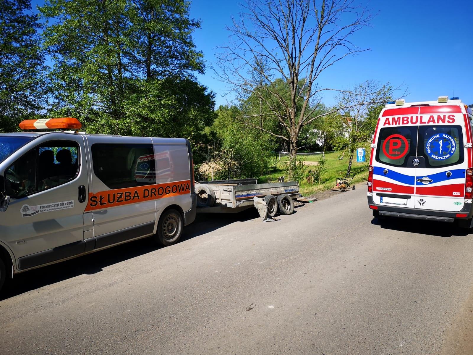 15 maja 2024 roku o godzinie 09:22 do Stanowiska Kierowania Komendanta Powiatowego w Olecku wpłynęła informacja o zdarzeniu komunikacyjnym w miejscowości Świętajno z udziałem samochodu ciężarowego oraz przyczepy samochodowej. W wyniku tego zdarzenia samochód ciężarowy uderzył w przyczepę, która była podpięta do zaparkowanego na poboczu drogi busa. Na przyczepie znajdowały się dwie osoby pracujące przy naprawie pobocza. Po przebadaniu, jedna z poszkodowanych została przetransportowana śmigłowcem LPR do szpitala, natomiast druga osoba nie wymagała hospitalizacji i pozostała na miejscu zdarzenia.