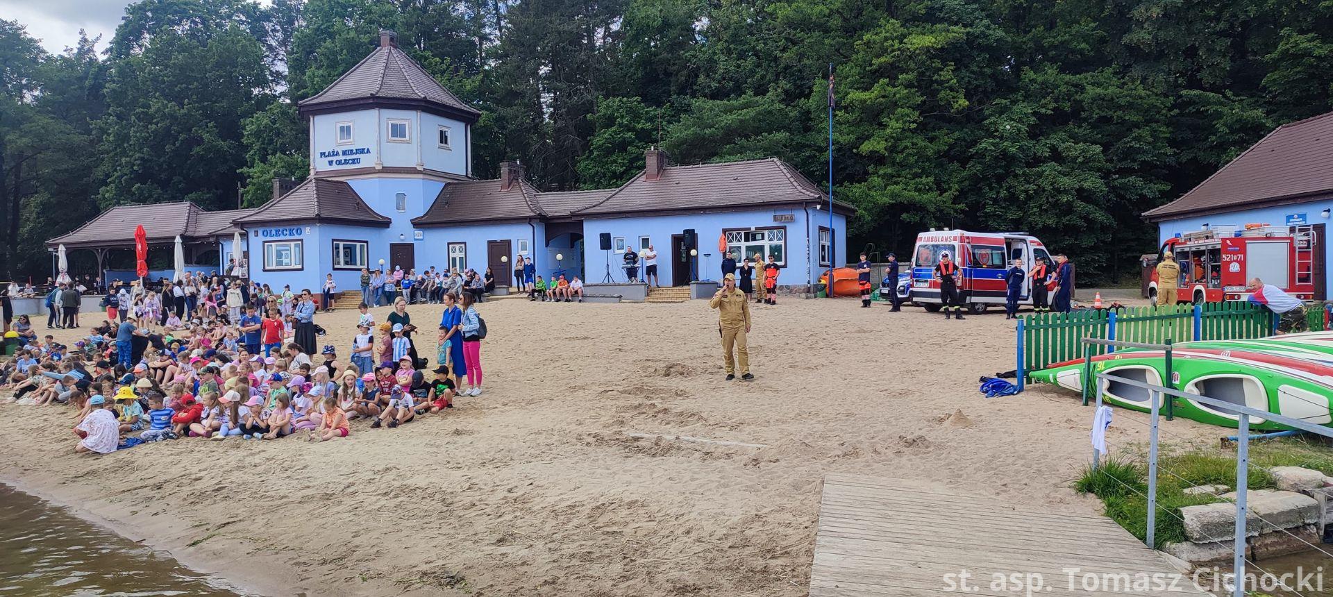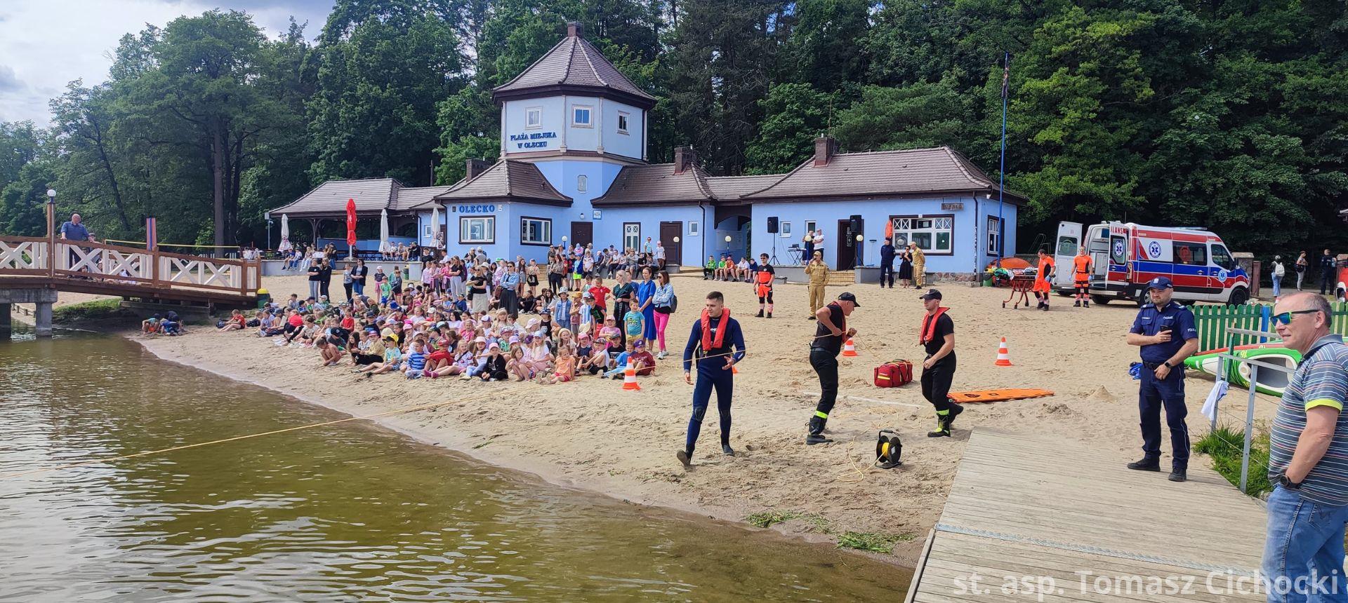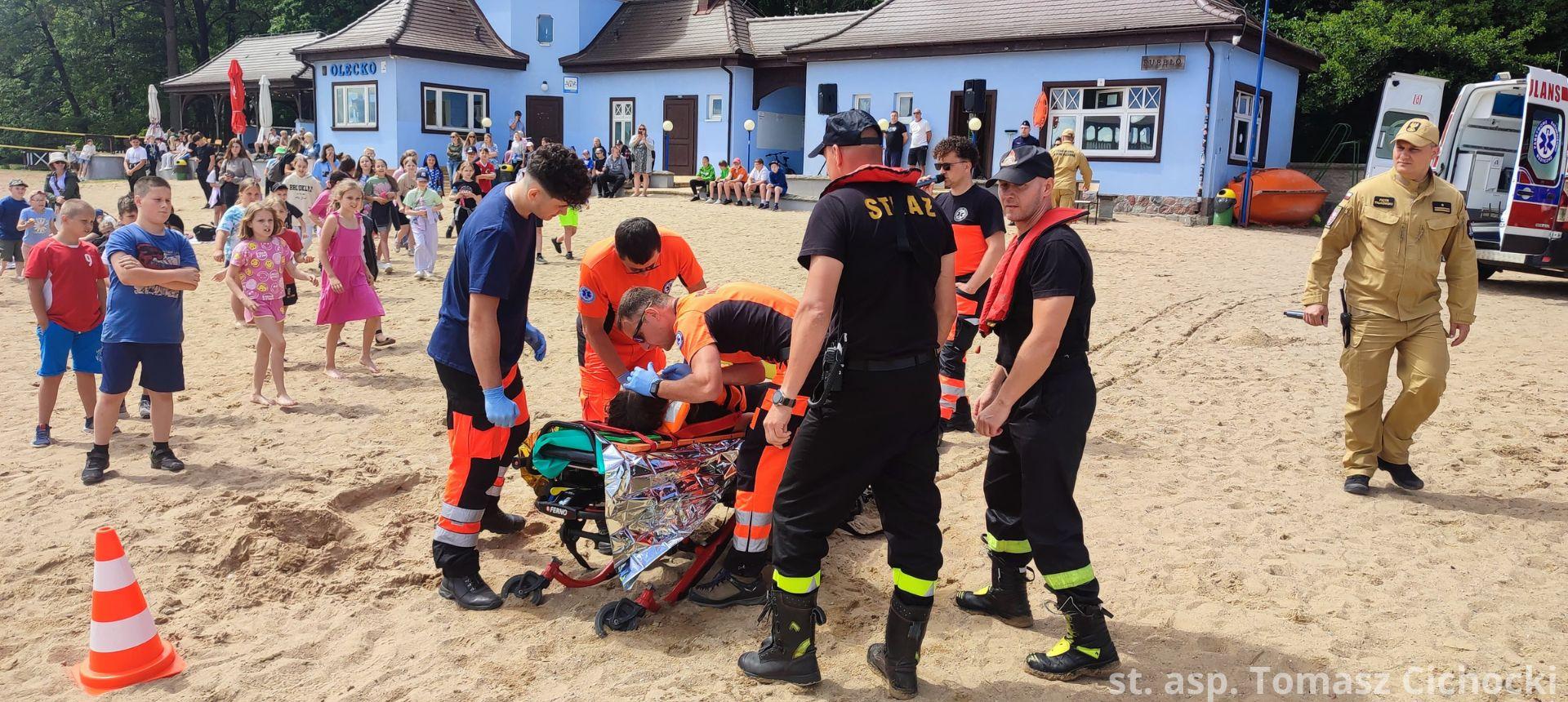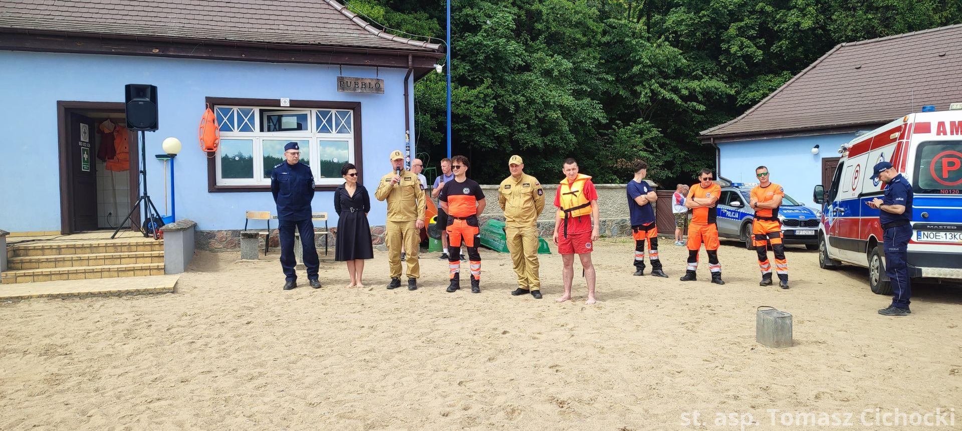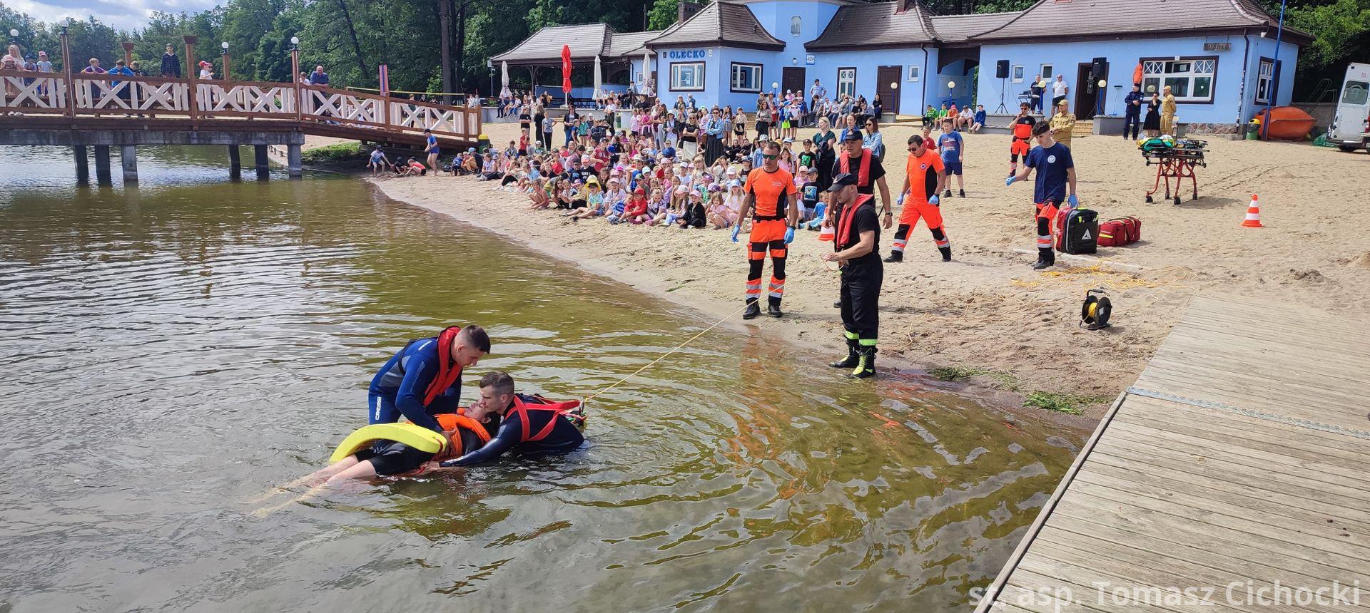 12 czerwca 2024 roku na plaży miejskiej „Skocznia” odbył się pokaz umiejętności służb ratowniczych w zakresie ratownictwa wodnego oraz medycznego. Według wcześniej przygotowanego scenariusza doszło do zdarzenia, w którym łódź motorowa uderza w rower wodny, po czym dwie osoby wpadają do wody. Dodatkowo łódź podczas zderzenia ulega awarii i zapala się. Akcja ratownicza polegała na ewakuacji osób poszkodowanych, udzieleniu pomocy medycznej oraz ugaszeniu pożaru łodzi. Ćwiczenia były okazją do zaprezentowania współpracy między służbami oraz zapoznaniem najmłodszych uczestników pokazu z obowiązującymi zasadami bezpieczeństwa związanymi z przebywaniem nad akwenami wodnymi.