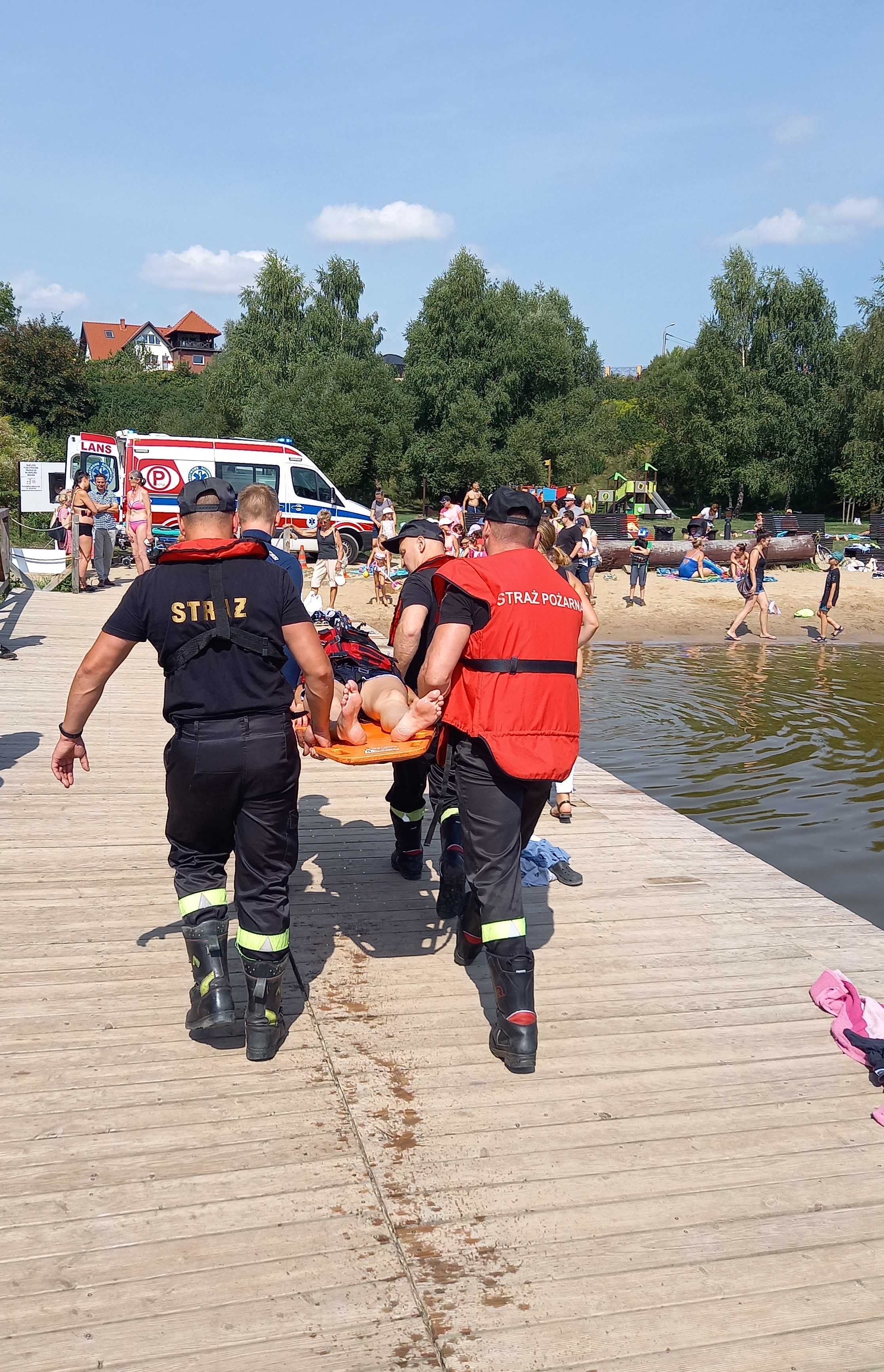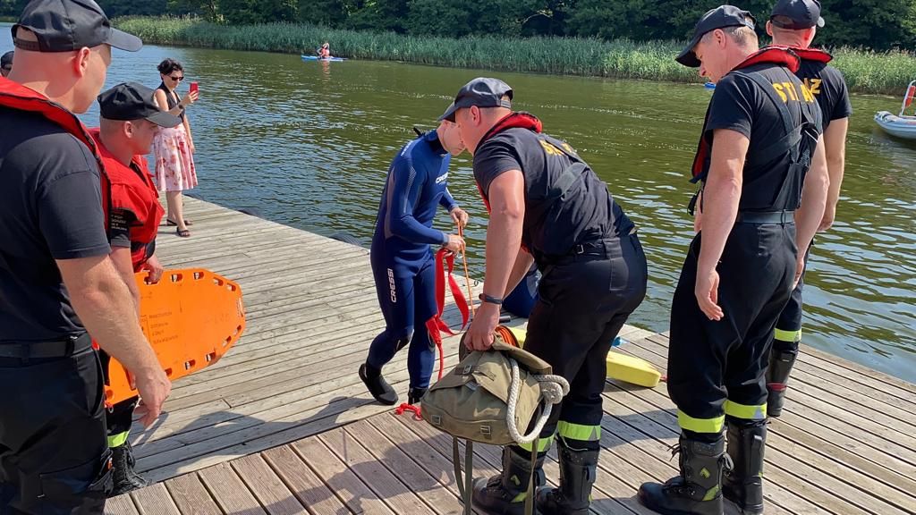 Dnia 18 sierpnia na plaży „Szyjka”, odbyły się pokazy umiejętności służb w zakresie ratownictwa wodnego oraz medycznego. Działania polegały na ewakuacji osób poszkodowanych, znajdujących się w wodzie w wyniku pożaru jednostki pływającej. Kolejnym etapem akcji było ugaszenie pożaru łodzi oraz pomoc medyczna poszkodowanym. Celem ćwiczeń było propagowanie zasad bezpiecznego zachowania i wypoczynku na akwenach naszego regionu oraz zaprezentowanie prawidłowej współpracy służb odpowiedzialnych za bezpieczeństwo. Podczas pokazów można było również z bliska obejrzeć pojazdy pożarnicze, specjalistyczny sprzęt Państwowej Straży Pożarnej, a także wyposażenie Policji i Zespołów Ratownictwa Medycznego.