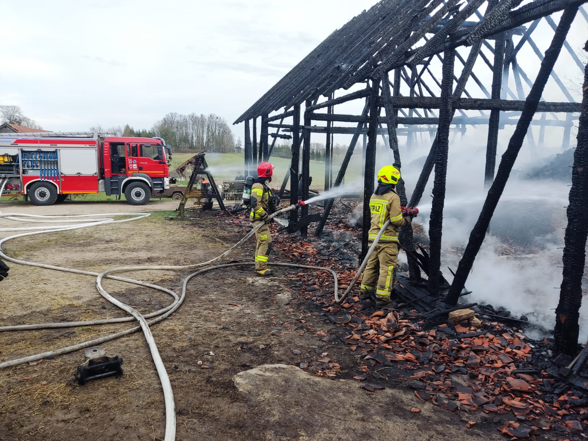 W działaniach ratowniczo-gaśniczych udział brały zastępy z Jednostki Ratowniczo-Gaśniczej w Olecku oraz jednostki Ochotniczej Straży Pożarnej w Świętajnie.
