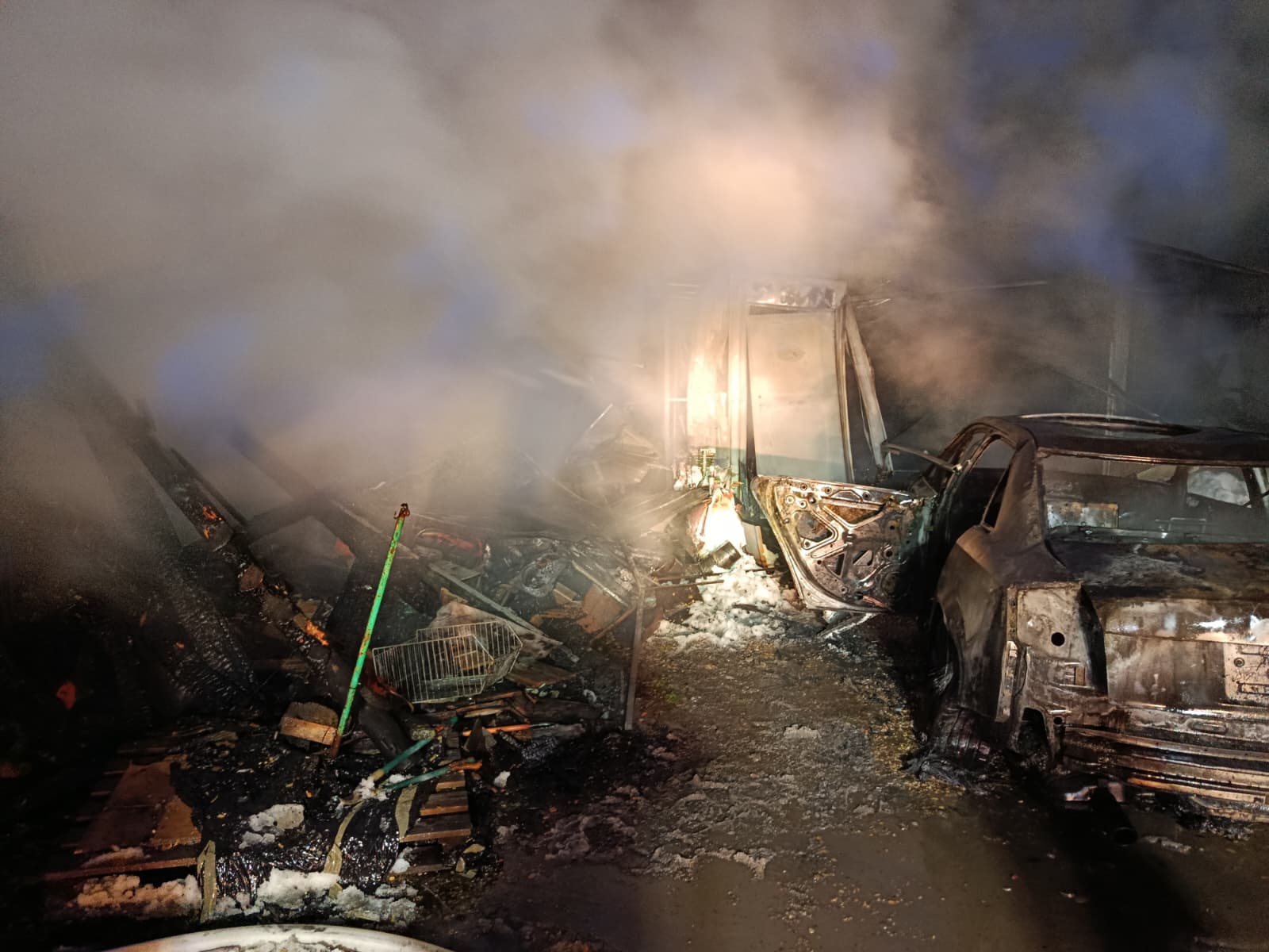Po dojeździe na miejsce KDR stwierdził, że płonie murowany budynek gospodarczy oraz przyległy blaszany garaż. Wewnątrz obiektów znajdowały się m.in. samochód osobowy oraz butle z gazem propan–butan, a także wyposażenie warsztatu i drewno. W momencie przyjazdu zastępów pożar był już w pełni rozwinięty.