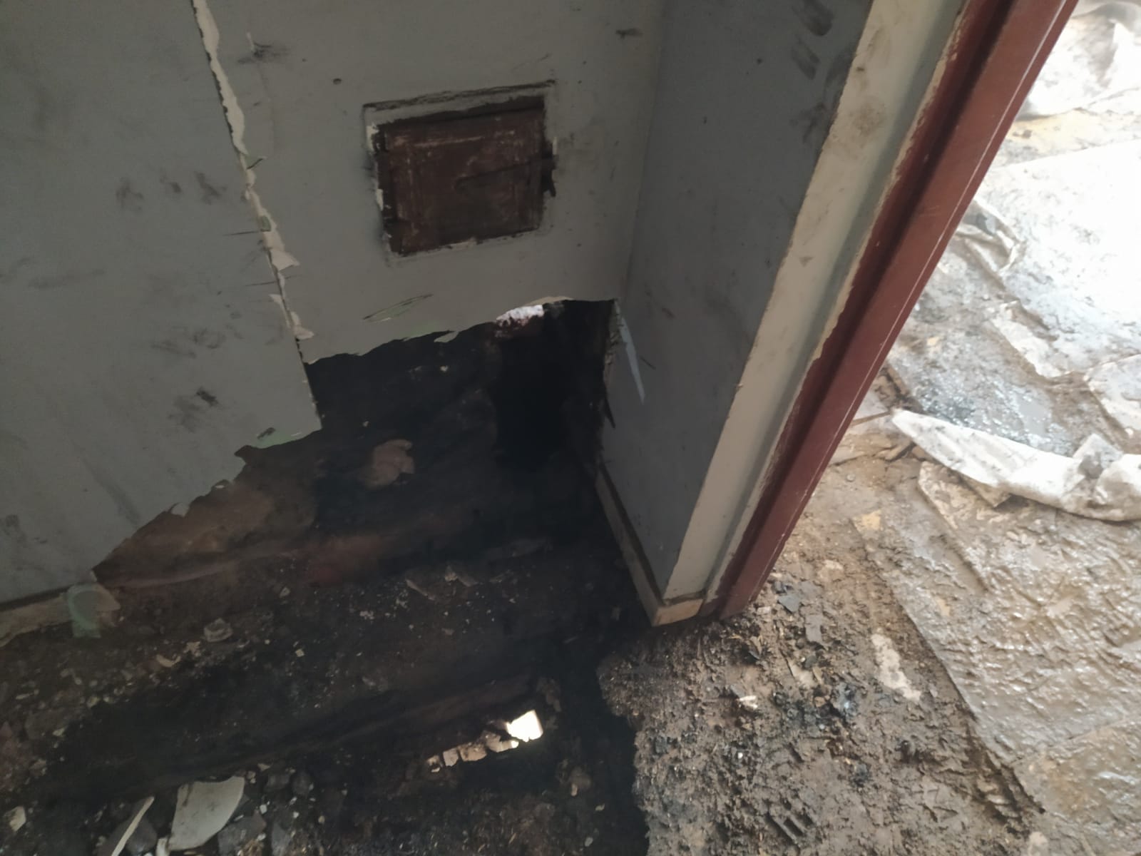 w wewnętrznej przestrzeni stropu w trzech mieszkaniach przyległych do komina.