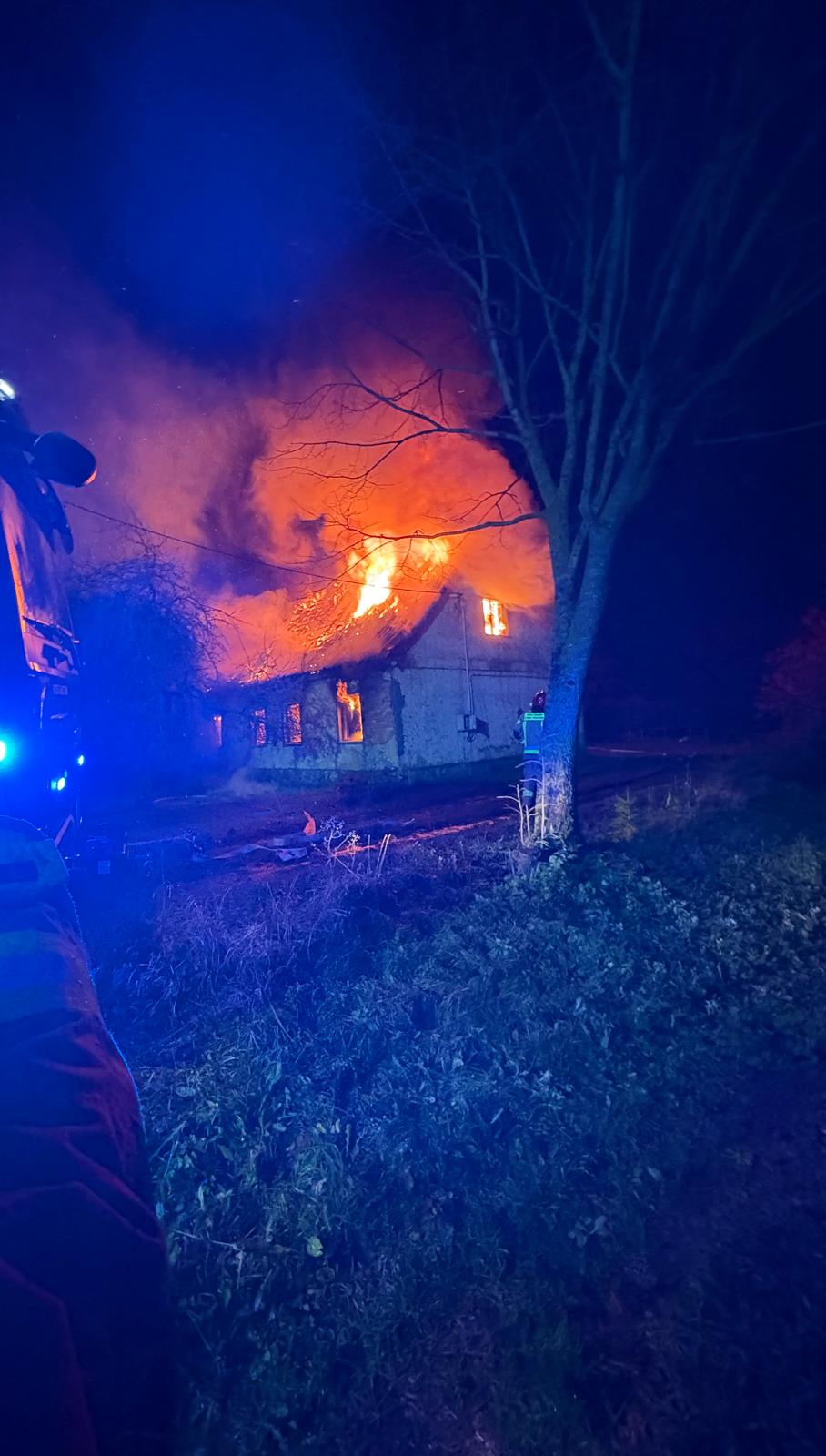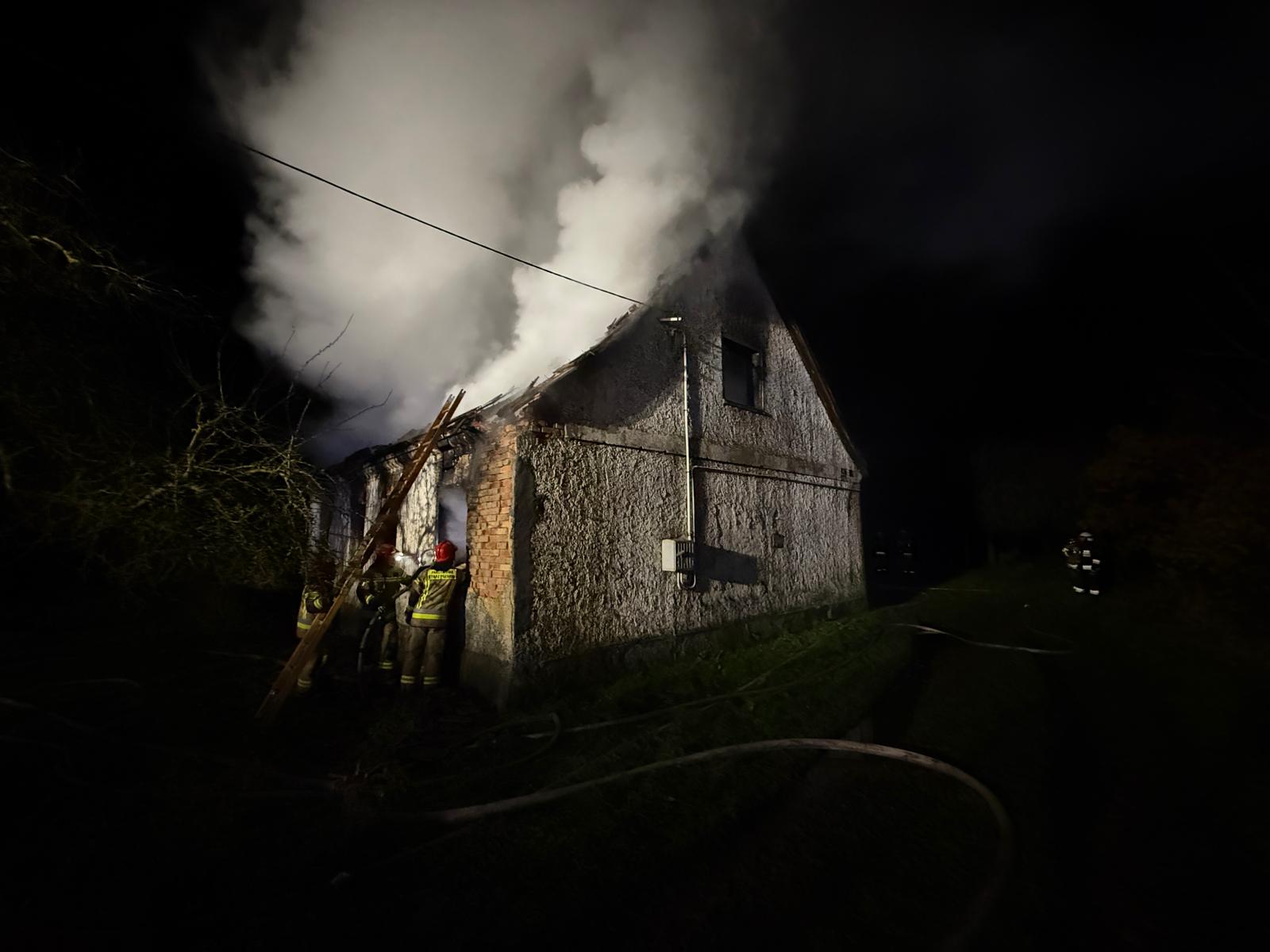 Po przybyciu zastępów na miejsce zdarzenia i przeprowadzeniu rozpoznania Kierujący Działaniami Ratowniczymi stwierdził, że pożarem objęty był cały budynek mieszkalny. Obiekt zamieszkiwała jedna osoba, która w chwili przybycia służb ratowniczych znajdowała się na zewnątrz. Mężczyzna nie odniósł żadnych obrażeń i nie wymagał pomocy medycznej.