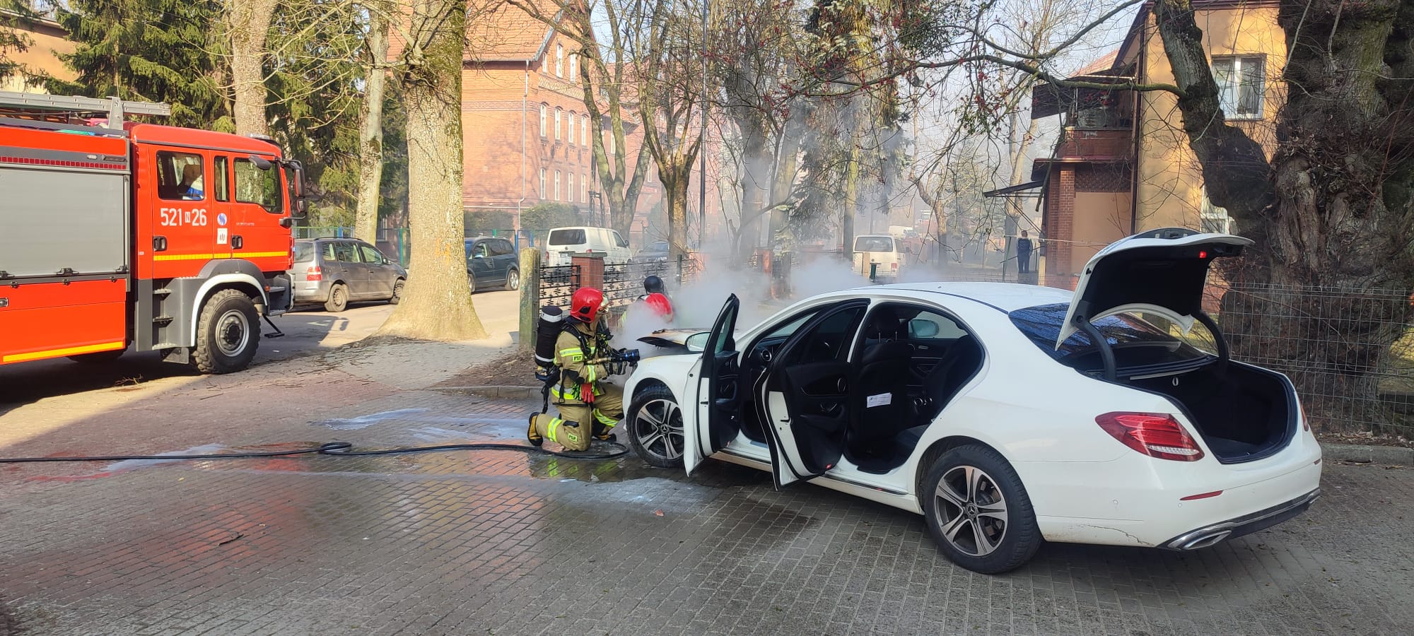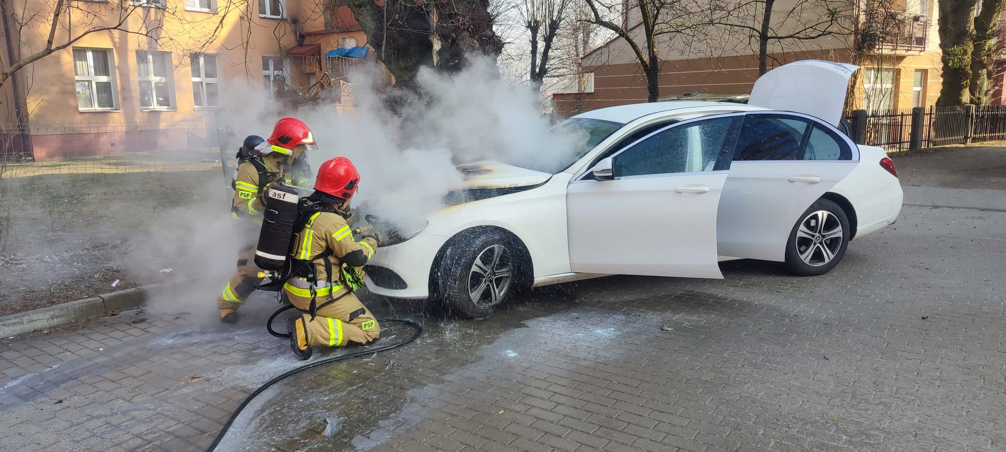 O godzinie 8:56 do Stanowiska Kierowania Komendanta Powiatowego PSP w Olecku wpłynęło zgłoszenie o pożarze samochodu osobowego na terenie jednego z lokalnych parkingów. Po przybyciu zastępów z Jednostki Ratowniczo-Gaśniczej na miejscu panowało duże zadymienie, wydobywające się z komory silnika pojazdu. Działania straży pożarnej polegały na zabezpieczeniu miejsca zdarzenia oraz ugaszeniu płonącego samochodu za pomocą jednego prądu wody.