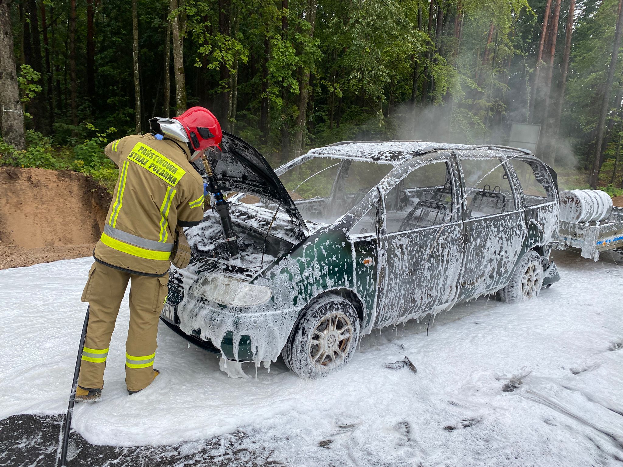 W momencie przybycia pierwszych zastępów, kierowca pojazdu znajdował się już poza samochodem w bezpiecznej odległości. Strażacy zabezpieczyli miejsce zdarzenia i przystąpili do gaszenia pożaru, którym całkowicie objęty był pojazd. Ze względu na obecność pustej, lecz potencjalnie niebezpiecznej beczki po paliwie, działania prowadzone były z zachowaniem szczególnej ostrożności.