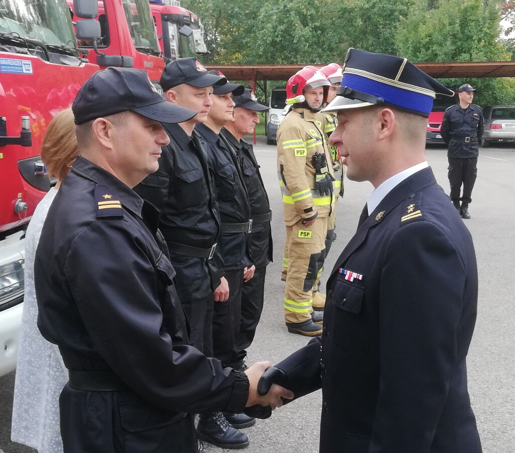 Po odczytaniu rozkazu i decyzji o zwolnieniu ze służby, Komendant w imieniu wszystkich strażaków i pracowników podziękował mł.bryg. Tomasz Jagłowski za pełną trudu i poświęceń służbę. Wyraził jednocześnie nadzieję, że mimo odejścia na emeryturę zawsze pozostanie w szeregach Państwowej Straży Pożarnej służąc radą i doświadczeniem młodszym kolegom. Na zakończenie, bohater uroczystości otrzymał okolicznościowe upominki, odebrał gratulacje od reszty załogi, a następnie zgodnie z tradycją został wrzucony do zbiornika brezentowego wypełnionego wodą.
