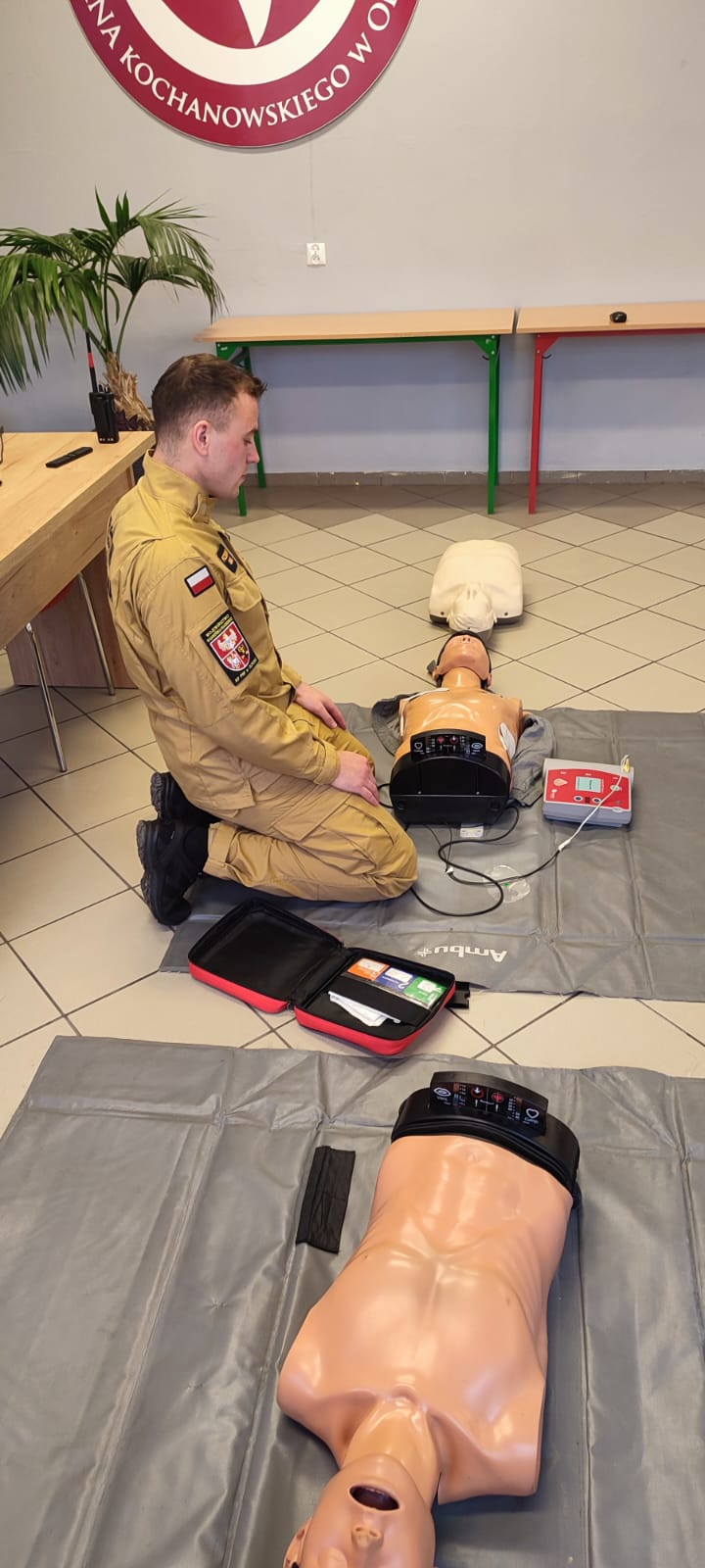 W części praktycznej zajęć młodzież miała możliwość zobaczenia na fantomach, jak prawidłowo przeprowadza się resuscytację krążeniowo-oddechową (RKO) oraz jak bezpiecznie i efektywnie korzystać z automatycznego defibrylatora zewnętrznego (AED). Pod czujnym okiem doświadczonych strażaków uczniowie mogli także samodzielnie spróbować swoich sił w wykonywaniu RKO, wcielając się na chwilę w rolę ratowników. Dzięki takiemu praktycznemu podejściu młodzież zyskała nie tylko nową wiedzę, ale i cenne doświadczenie w danej dziedzinie.